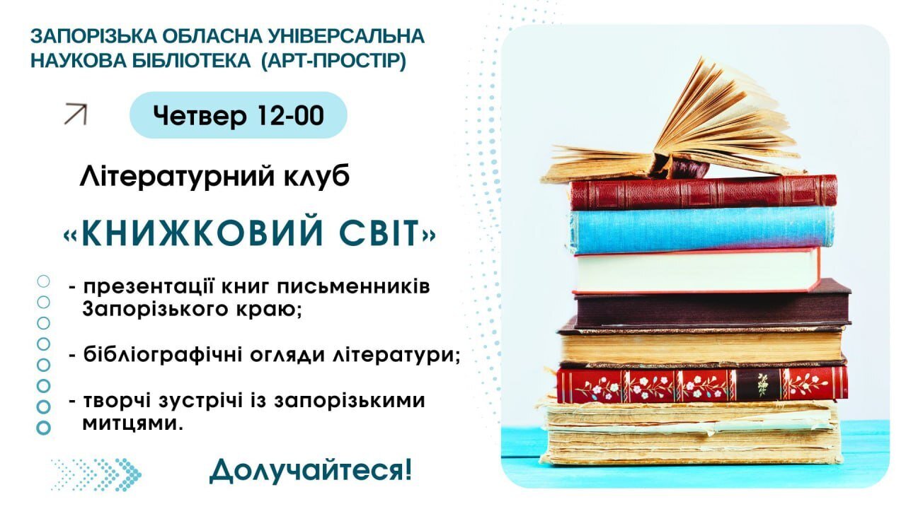 Не можете уявити своє життя без літератури? Цікавитеся книжковими новинками? Завітайте на засідання клубу.