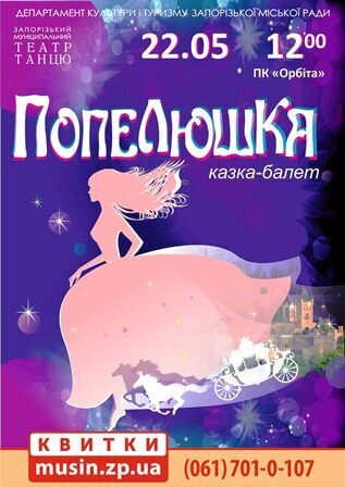 22 травня у Запорізькому муніципальному театрі танцю відбудеться прем’єра казки-балету «Попелюшка» за мотивами однойменного твору Шарля Перро. Початок вистави о 12:00.