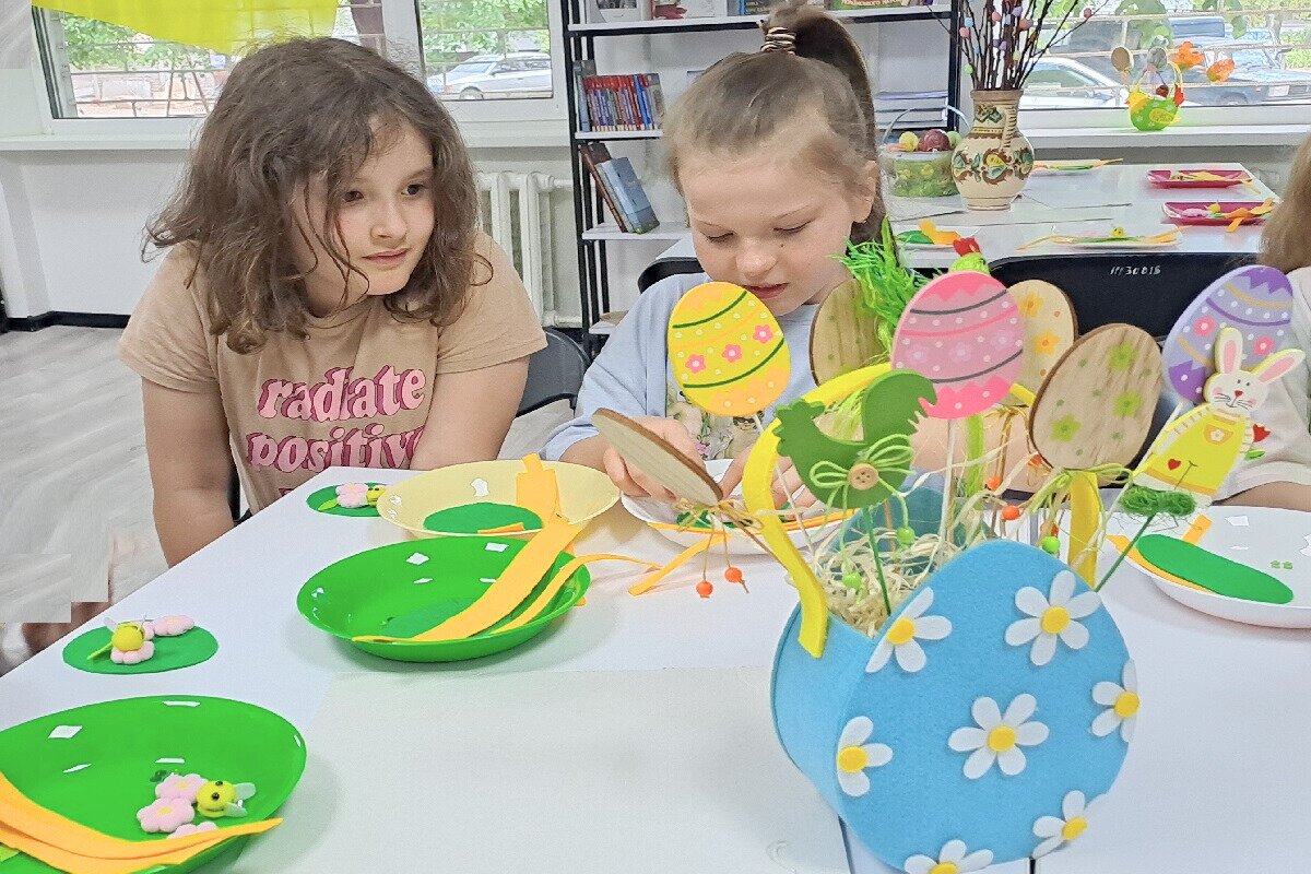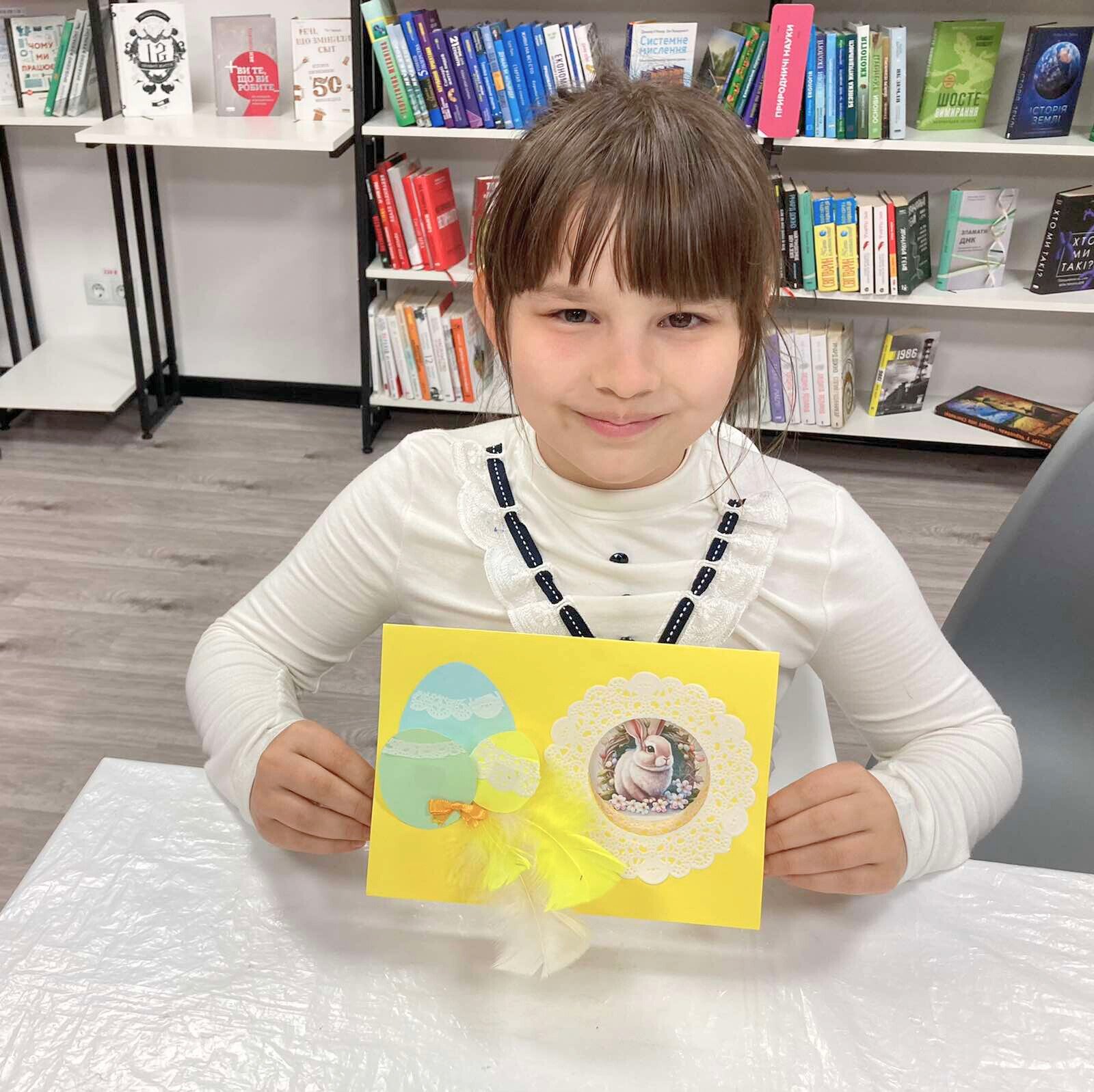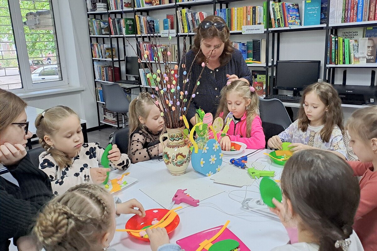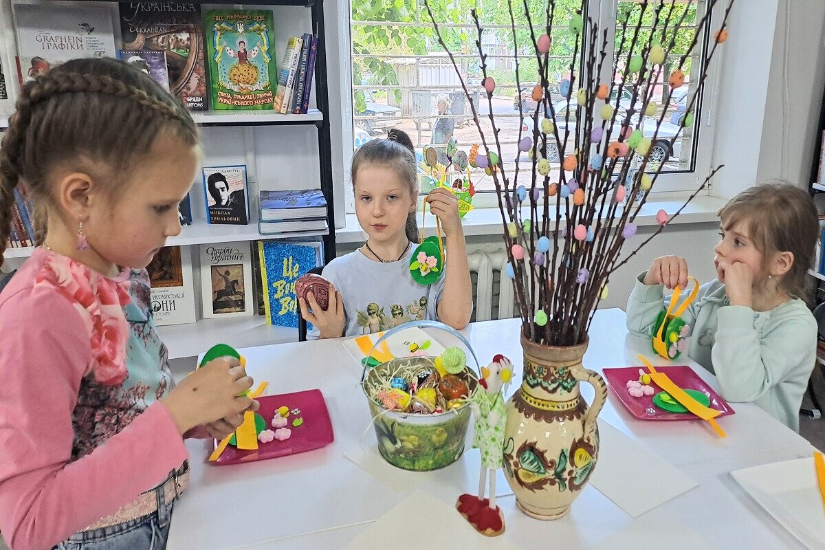 В рамках проєкту «Великодня Art-майстерка» бібліотека на вул. Чарівна,121 запросила маленьких читачів на майстер-клас вітальна листівка «Великодня писанка», який провела керівник студії декоративних квітів «Троянда»- Ірина Солдатова.