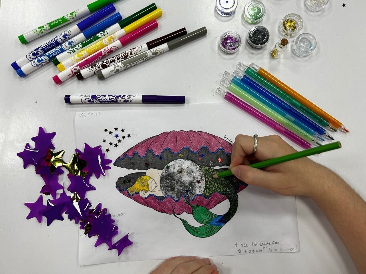 Психологиня, арт-терапевтка БФ «Посмішка» Ольга Опілат завітала до бібліотеки вул. Запорізького козацтва,17а з неймовірним арт-заняттям «Перлина душі». Ця зустріч допомогла розкритися – і дорослим, і дітям. Заняття було спрямовано на формування адекватної самооцінки й уміння керувати своїми емоціями, долати труднощі та стабілізувати емоційний стан.