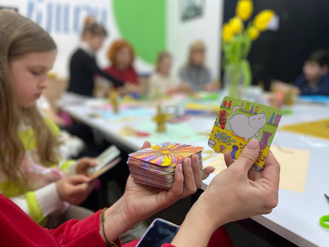 Майстер-клас проводила психологиня, арт-терапевтка Ольга Опілат, яка в своїй роботі застосовує метафоричні асоціативні карти, щоб мобілізувати візуальні, емоційні та інтуїтивні способи мислення.