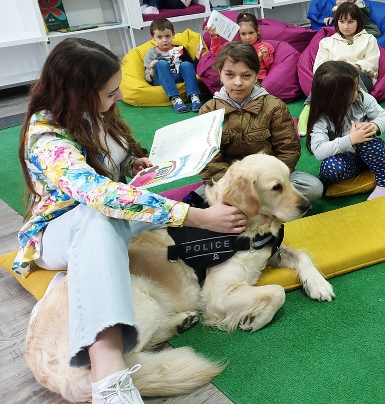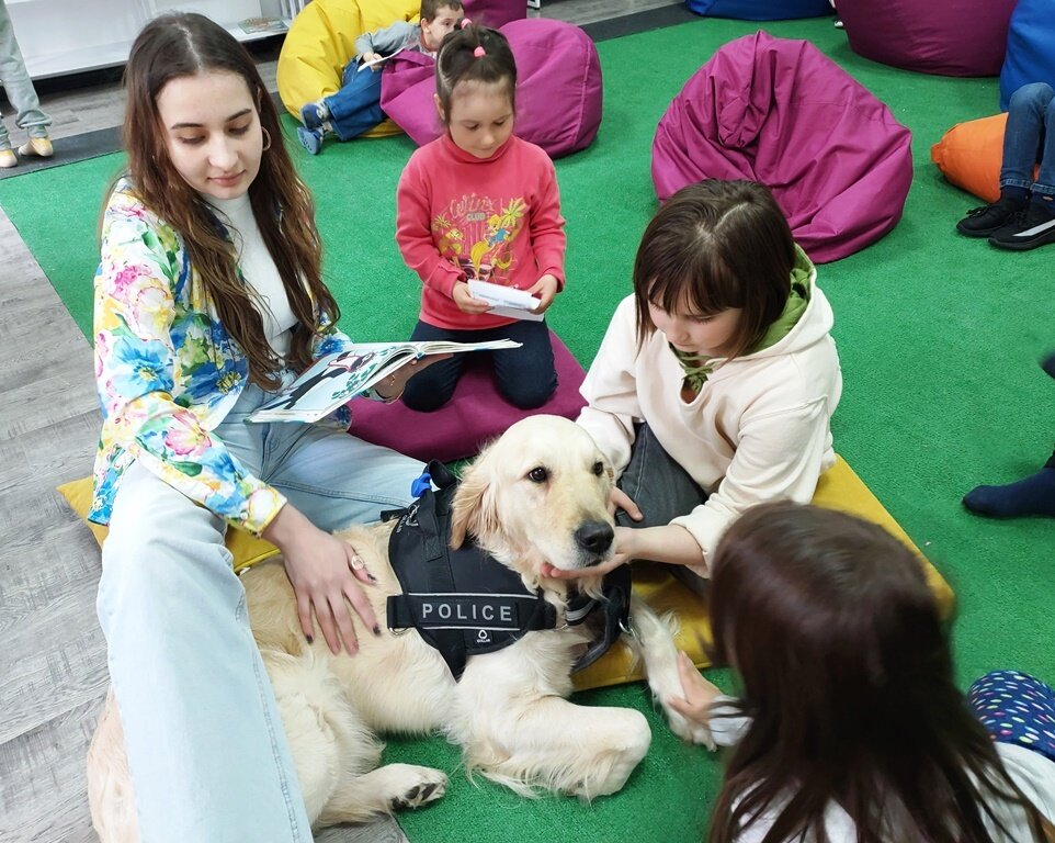 Зустріч із золотистим ретривером Мірою викликала багато щирих емоцій. Діти із задоволенням читали їй вголос казки, а наприкінці всі охочі могли зробити собі фотографії з Мірою.