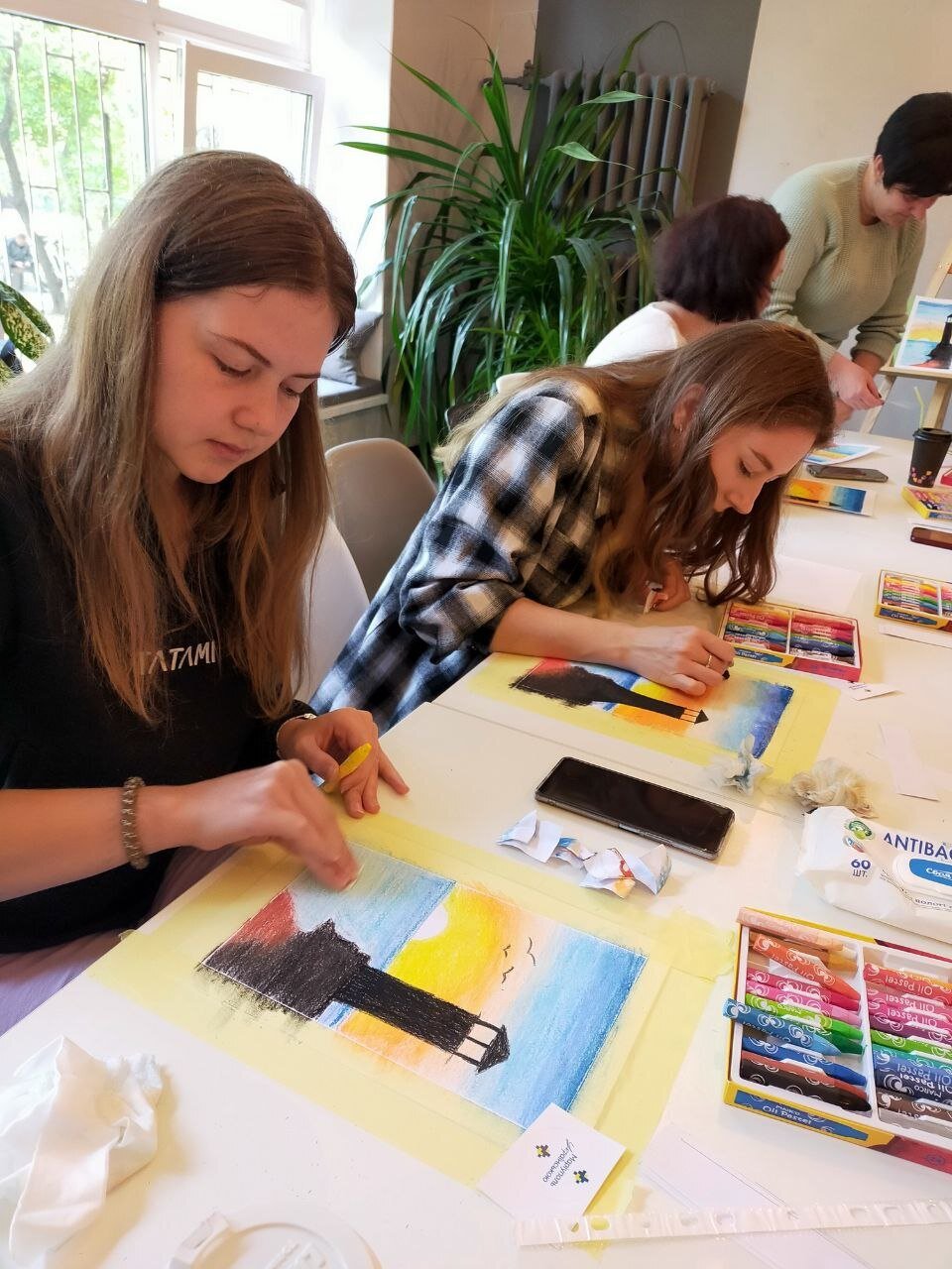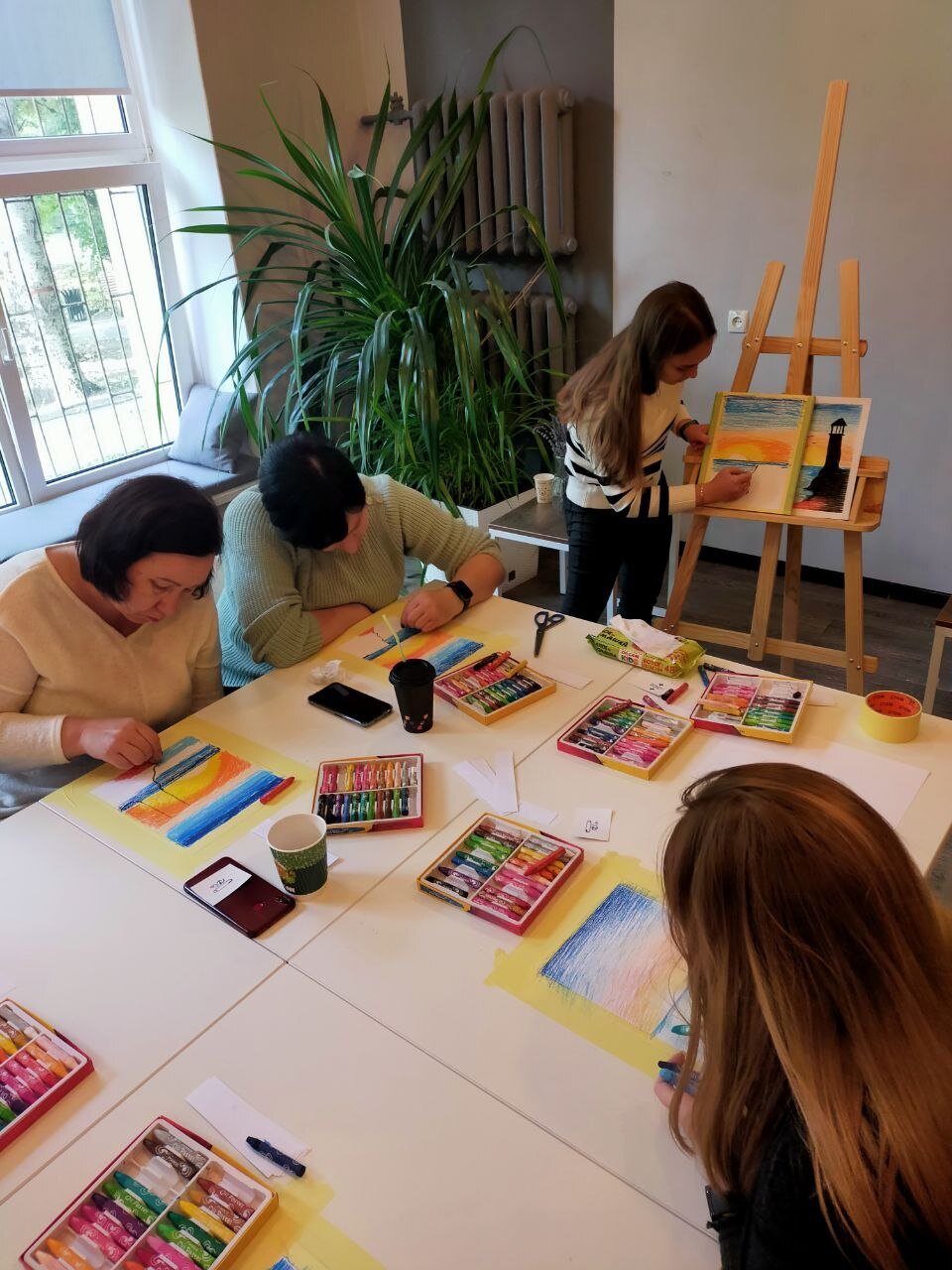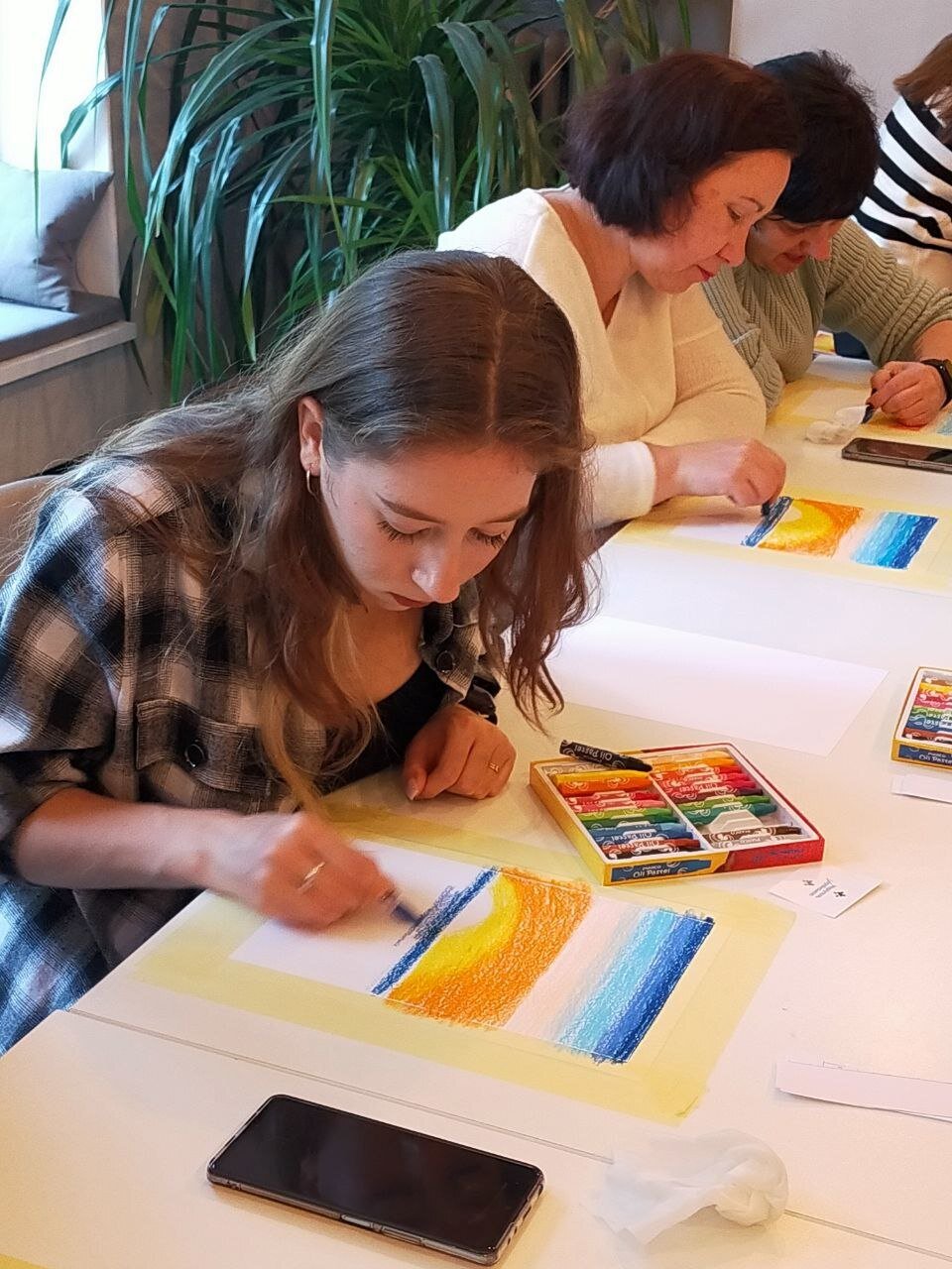 У Центральній бібліотеці на Гоголя, 66 відбулося заняття з малювання пастеллю "Холодне море" разом із менеджеркою Центру підтримки внутрішньо переміщених осіб "Я-Маріуполь" Вікторією Телятник. Наші чудові учасниці заходу малювали, спілкувалися та надихали одна одну у цей чудовий суботній ранок. Яскраві фарби малюнку задали позитивний тон цілому дню!
