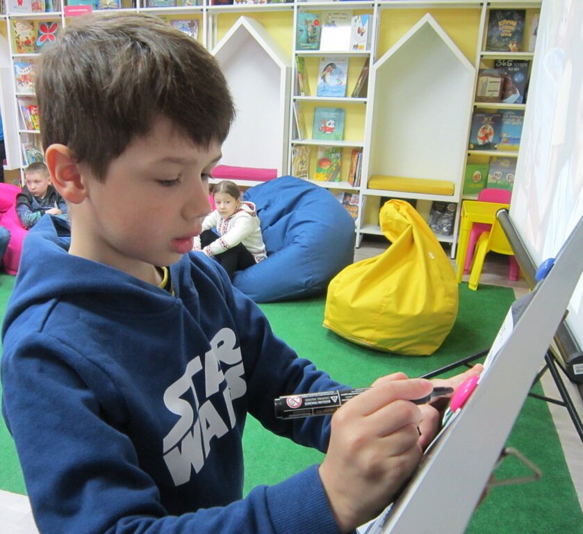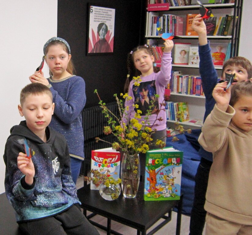 У рамках веселої бібліоняні "Читай! Смійся! Радій!" в бібліотеці на вулиці Чарівній, 121 діти не лише читали, але й активно проводили час: грали в різноманітні ігри та конкурси, відгадували загадки, багато сміялись та рухалися під музику разом з "Веселою Булькою".