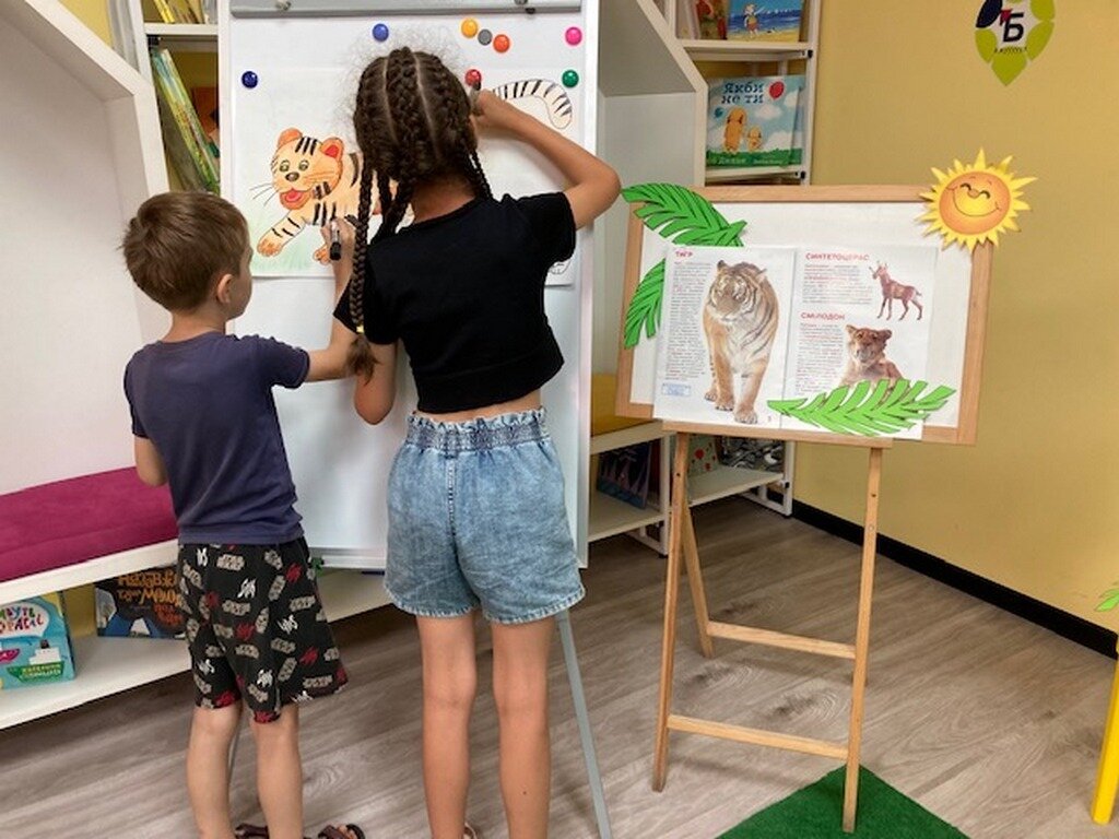 Енциклопедія Всезнайки розповіла дослідникам багато цікавих фактів про цього мужнього звіра. Інтерактивна гра-читання казки «Тигреня Бінке та його смужки» супроводжувалася малюванням колективної ілюстрації до неї. Під час майстер-класу малюки створили кольорову книжкову закладку у вигляді тигра. Захід завершився веселою грою «Спіймай тигра за хвіст» на бібліотечній веранді.
