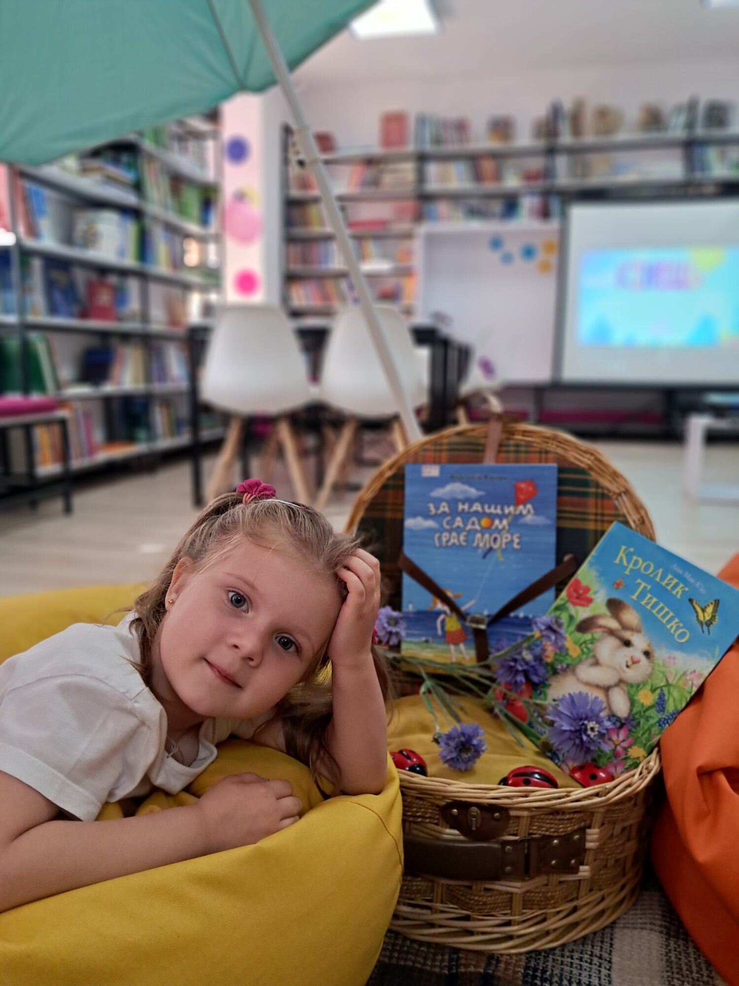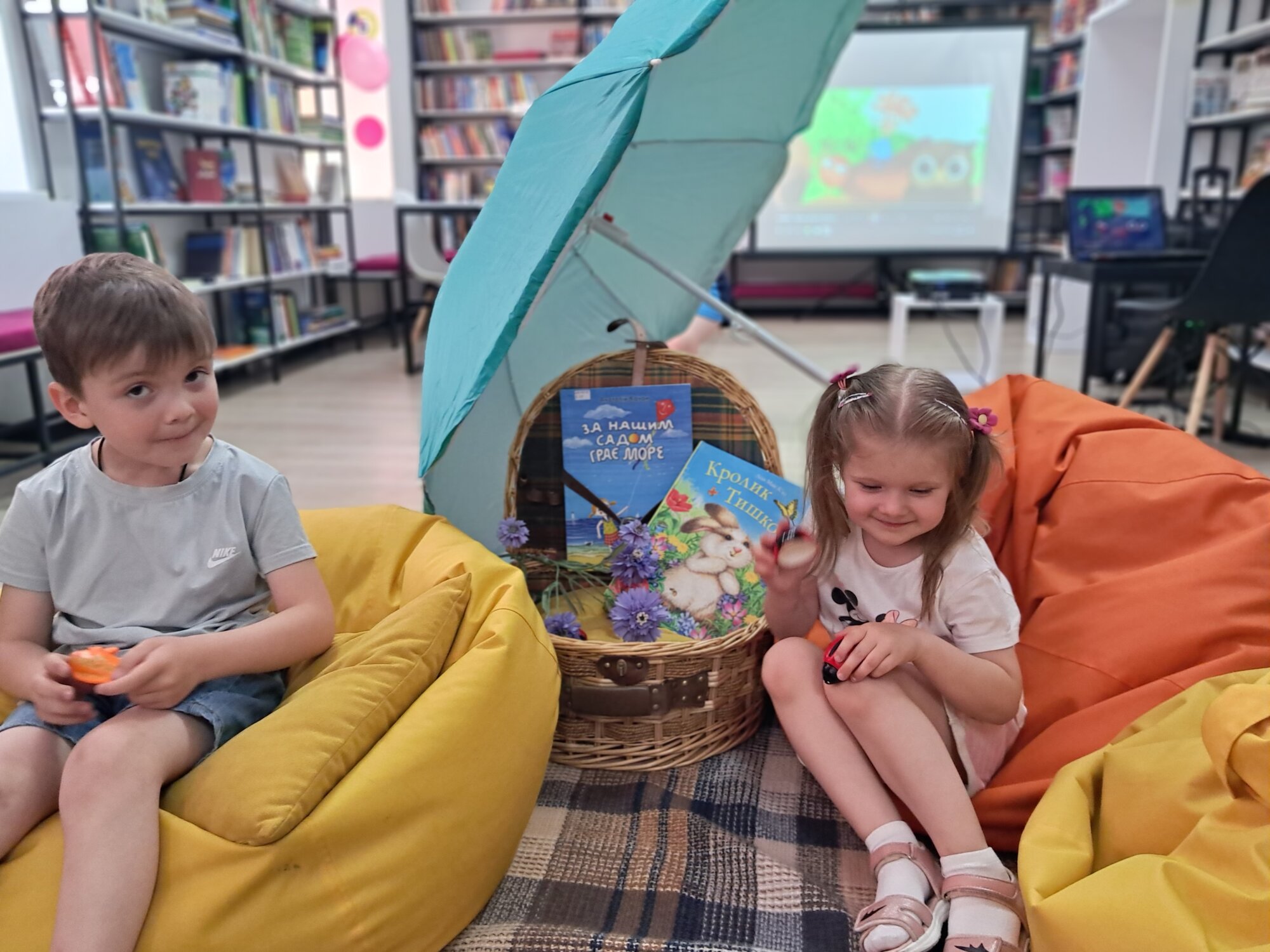 Під пляжною парасолькою відбулось справжнє книжкове «чaстування». Діти із захопленням гортали новенькі яскраві книги про літо. А як же без улюблених пізнавальних вікторин та бадьорих руханок!