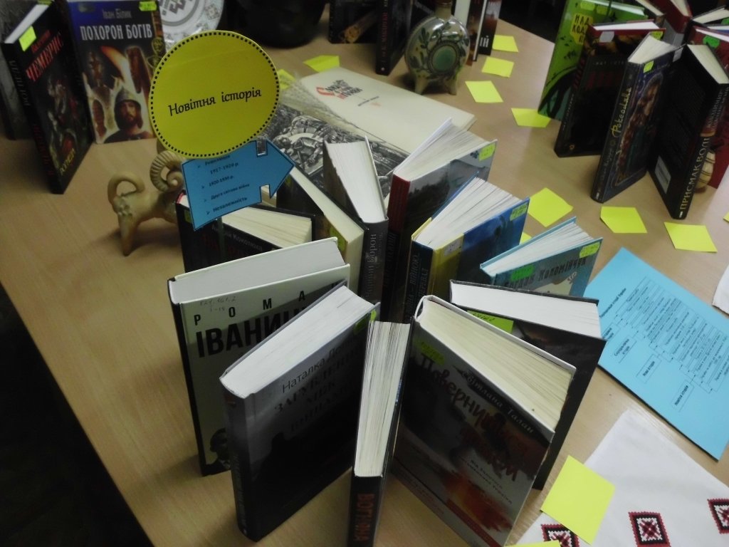 Під час бібліотурне учасникам було запропоновано осягнути хронологію історичних подій через сюжетні лінії художніх романів. Для подорожі в глибини історії нашої країни були підібрані та систематизовані книги, події яких розгортаються на тлі тих чи інших історичних епох. Такий формат дуже сподобався присутнім, а вікторина «Сторінками нашої історії» дозволила виявити справжніх знавців історії нашої держави. Захоплюючі твори від відомих українських романістів привернули увагу відвідувачів до нової виставки, а рекомендації бібліотекарів дозволили підібрати кожному книгу до душі.