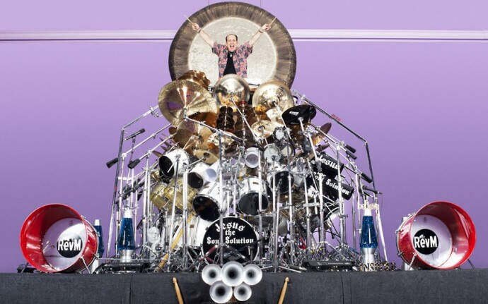 Найбільшу ударну установку зібрав священник Марк Темпарато. В неї увійшли вісімсот тринадцять інструментів. Він збирав її протягом двадцяти років. Деякі інструменти знаходяться на висоті 2-2,5 метрів. В тиждень священник витрачає близько сімнадцяти годин на те, щоб утримувати гігантську ударну установку в належному стані.