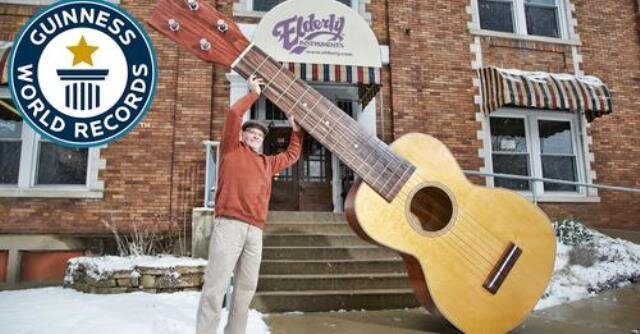 Гавайські гітари, які ще називаються укулеле, маленькі і легкі чотириструнні музичні інструменти, але Лоуренс Стамп з США створив гігантську довжиною майже 4 метри (зафіксований рекорд 3,99 метрів) укулеле. Це не просто макет музичного інструменту, він може налаштовуватися і на ньому можна грати. Тепер ця укулеле увійшла до Книги рекордів Гіннеса 2017 року, як найбільша укулеле в світі: