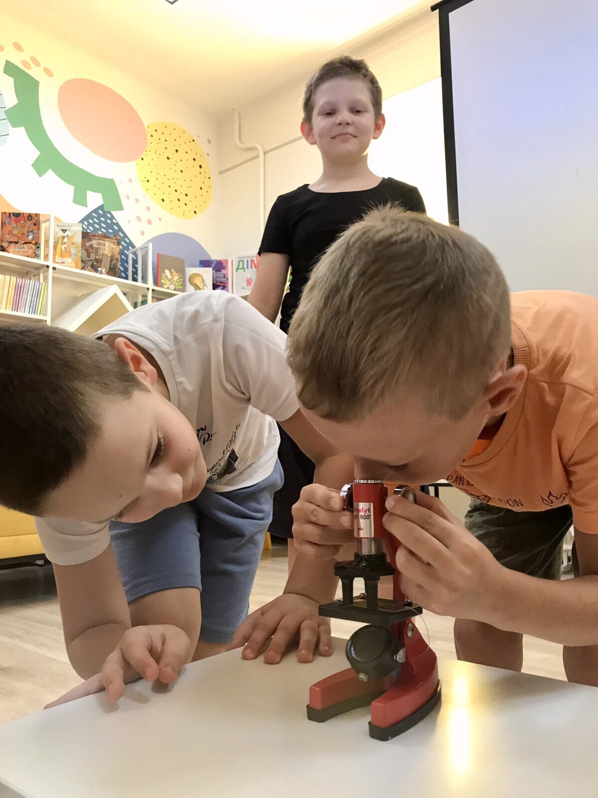 Перше вересня - це завжди особливий день, коли відкриваються нові можливості для навчання, знань та розвитку. На бібліоняні від бібліотеки Моторобудівників,64, яка має назву "Експеримент-шоу "У гості до наук" діти занурилися в справжнє шкільне життя. Вони відвідали уроки математики, фізичної культури, біології та хімії, де мали можливість відчути себе справжніми школярами. На уроці біології наші читачі ознайомилися з мікроскопом, досліджуючи мікросвіт живих організмів. А на уроці хімії вони проводили захоплюючі хімічні експерименти, вивчаючи основні явища та реакції.