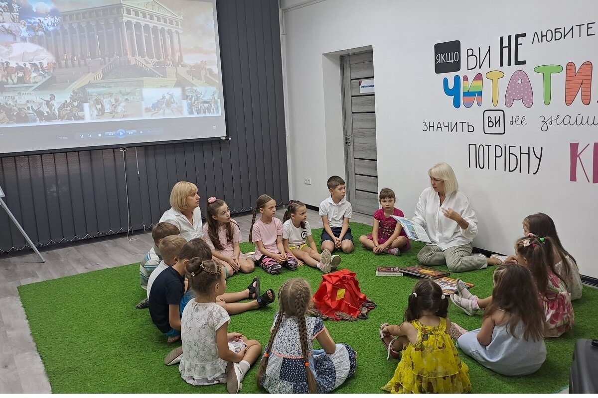 А бібліоняня на Ладозькій, 26 запросила дітлахів у захоплюючу подорож не тільки у просторі, але й у часі: вони відправились до Еллади - на зустріч з величними грецькими богами та героями, на пошуки золотого руна.