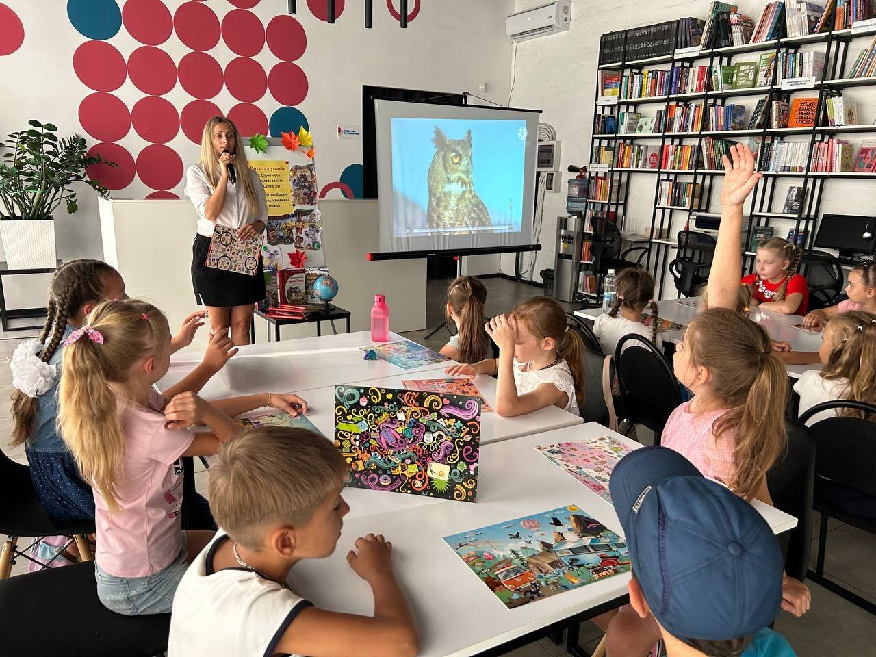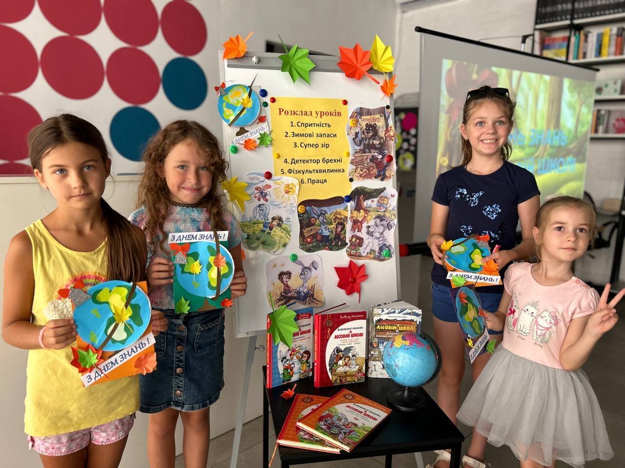 Розпочався новий навчальний рік - казкова подорож в країну знань та мрій. Тому, у бібліотеці вул.Запорізького козацтва, 17а бібліотекарі вирішили створити шкільні уроки в ігровому форматі, від лісових друзів з книг В.Нестайко «Дивовижні пригоди у лісовій школі». На дітей чекали незвичайні завдання, розвиваючі заняття, настільні та спортивні ігри, а на завершення майстер-клас «Глобус-блокнот», в якому діти написали побажання один одному.