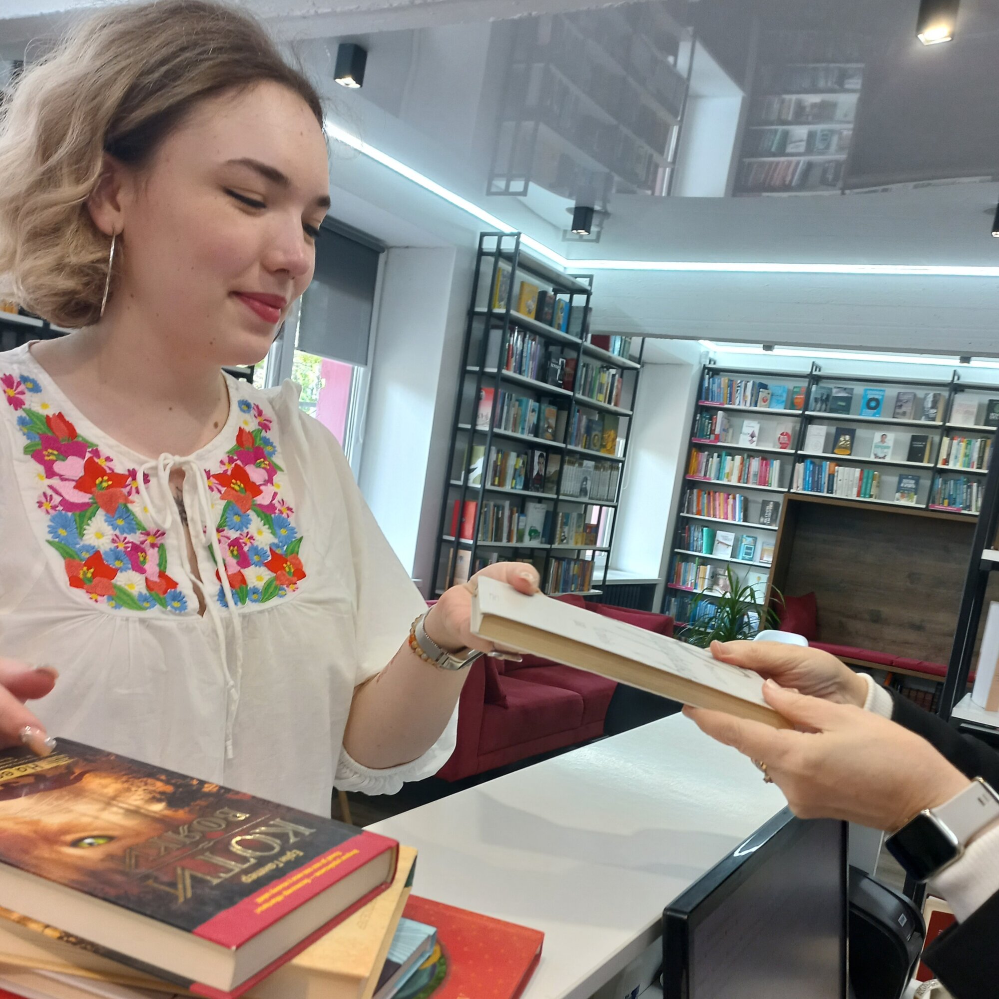 Так, 15 травня, в бібліотеці, що на бульварі Марії Примаченко, 7 в честь національного свята, двері були відчинені для всіх охочих розділити радість та гарний настрій. Всі, хто прийшов у вишиванці - отримали книжечку в подарунок від бібліотеки.