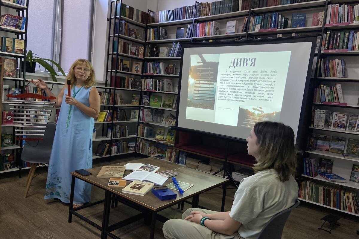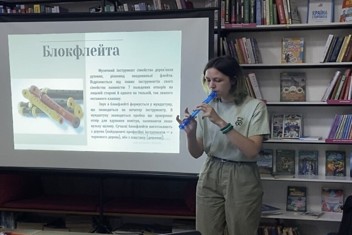 Бібліотека на проспекті Соборному, 173 запропонувала своїм відвідувачам незвичний захід у форматі музичного експерименту. Були запрошені всі, хто грає на будь-якому інструменті. Так учасники й слухачі перформансу отримали чудову можливість дізнатися щось нове про певний музичний інструмент, послухати музику в його виконанні та спробувати себе у створенні власної мелодії. Між музичними паузами бібліотекарки розповідали