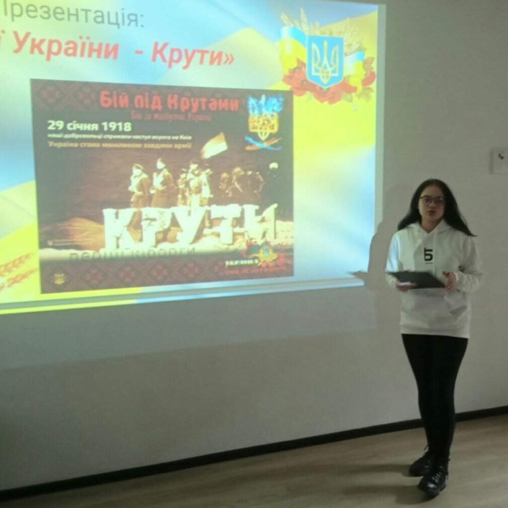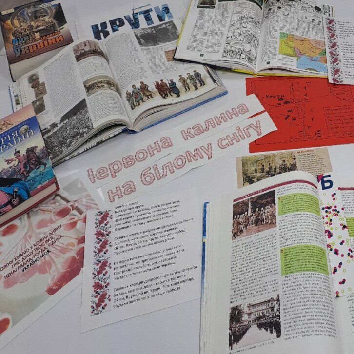 Для присутніх був проведений екскурс в історію, який висвітлював трагічні події тих років, а також представлений книжковий огляд «Червона калина на білому снігу». Присутні дізналися про бій, який отримав велике символічне значення та дістав назву «Бій під Крутами». Герої Крут назавжди будуть символом незламності нашого народу. Вони одні із тих, хто надихає наших бійців тримати оборону у сучасній російсько-українській війні. Їх подвиг збережеться в пам’яті кожного українця.