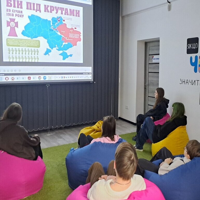 28 січня у бібліотеці на вулиці Закарпатського легіону, 9 читачі зібралися на відеоінформ до Дня пам’яті Героїв Крут. Метою заходу було ознайомлення з історією цієї дати та важливістю подій, які стали символом української волі. Під час заходу відвідувачі познайомилися з книгою «Крути. Січень 1918», подивилися документальні кадри, обговорили паралелі з сьогоденням та відчули єдність українського народу.