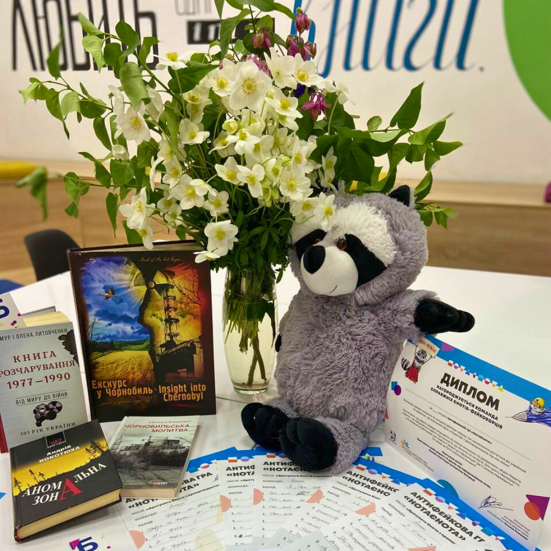 Тренерка Анастасія Майстро провела гру «Чорнобиль. Фейки про ядерну та біозброю» з читачами нашої бібліотеки на пр.Моторобудівників, 64, в якій взяли участь 3 команди по 5 гравців. Змагання включали відкриті питання, конкурс на вміння шукати інформацію, працювати з фото- і відеофейками і питання на логіку. Завдання приготувала Альона Романюк разом із командою — вони унікальні для кожної гри й побудовані на конкретних кейсах дезінформації та пропаганди. Квіз тривав 90 хвилин (4 раунди).