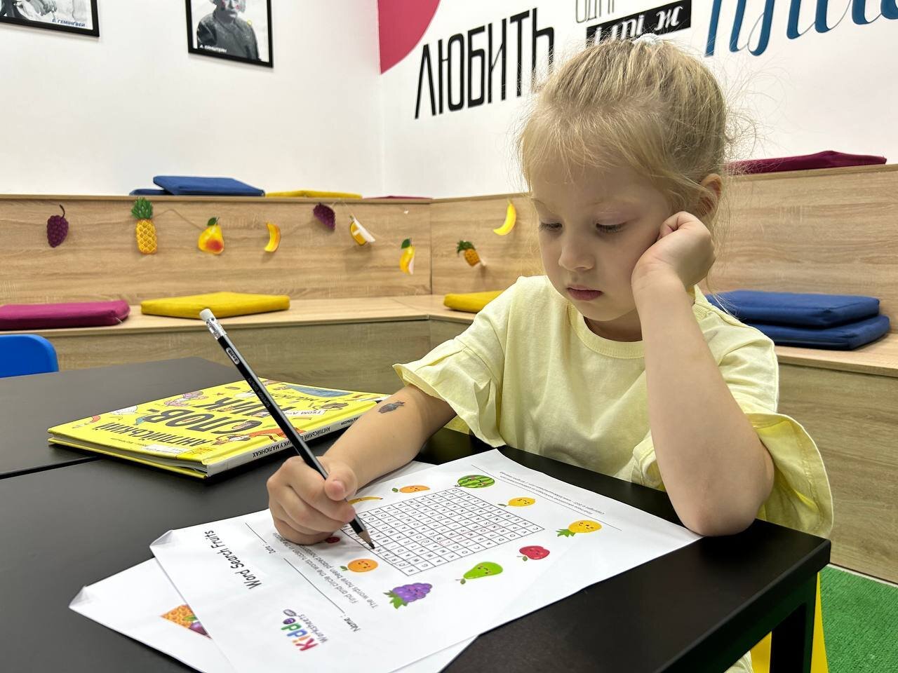 Літо у розпалі! І у бібліотеці, вул. Запорізького козацтва, 17а англійська мова вивчається теж смачно та яскраво, по- ітньому! Жодне заняття не проходить без інтерактивних ігор, командної роботи та тематичних пісень або мультфільмів.