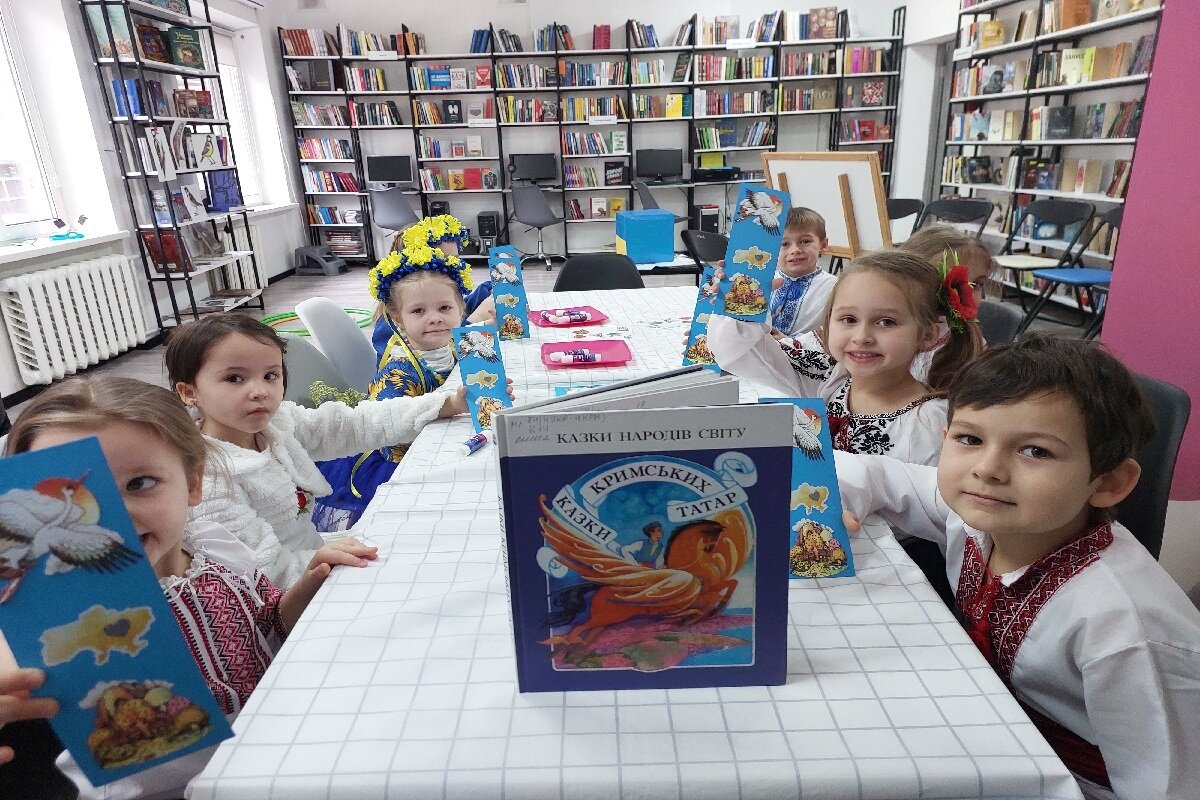 До Дня спротиву окупації Криму чергове заняття в межах проєкту «Читай! Я буду слухати!» бібліотека на Ладозькій, 26 присвятила чудовій книзі «Казки кримських татар». Малюки послухали історії про хитру кішку та розумного півника, про добру і мудру курку; розіграли казку про соловейка, що понад усе прагнув волі, і зробили на згадку про зустріч закладку для книг - журавлик – символ любові до рідної землі.