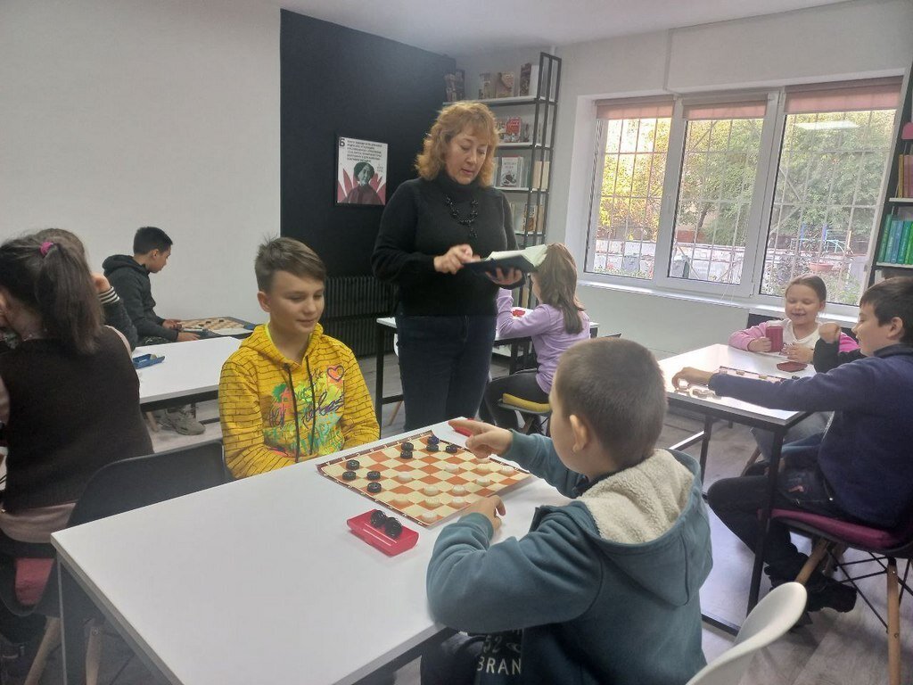 По-справжньому діти захопились процесом вже під час своїх перших партій. Повне занурення в протистояння один з одним та намагання будь-що перемогти, зі сторони нагадувало справжні спортивні змагання. Бурхливі емоції в кожній парі не вщухали аж до кінця заняття! А пильним рефері(аби все було за правилами) і чуйним вчителем (аби кожен зміг навчитись грати) сьогодні виступала Людмила Литвиненко – професійна тренерка з шашок.