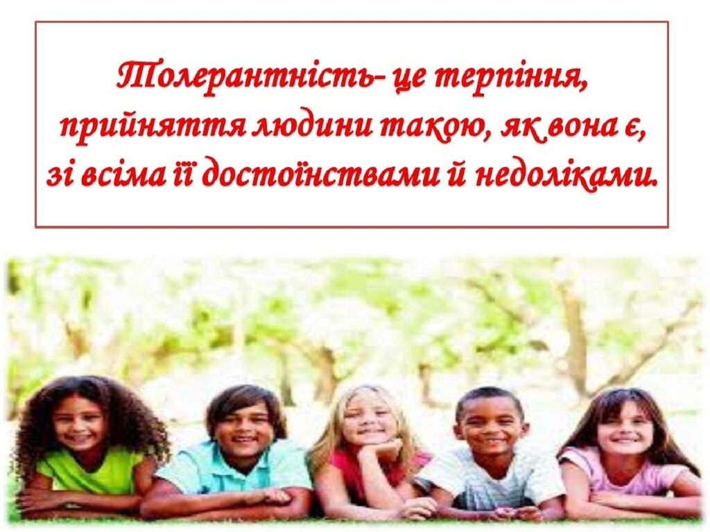 Толерантність є досить тонкою гранню, якої, безумовно, потрібно дотримуватися, оскільки вона визначає моральний, суспільний та демократичний розвиток суспільства, вважається показником високого духовного й інтелектуального розвитку особистості. Тож, будьте толерантними, адже ми приходимо у цей світ для того, щоб бути щасливими.