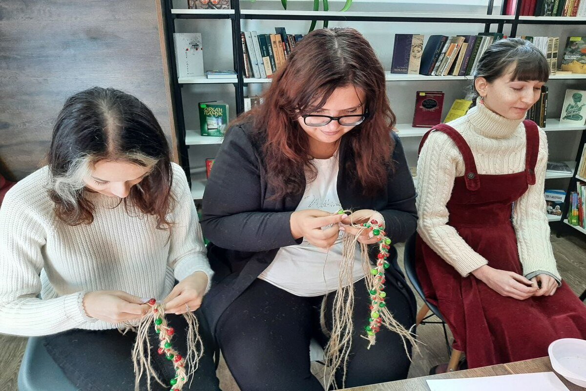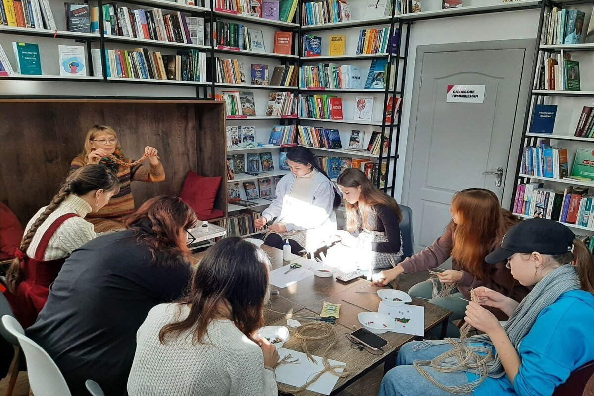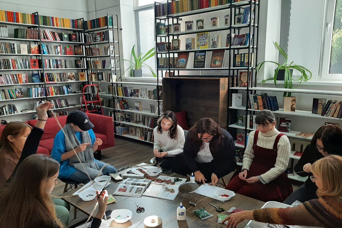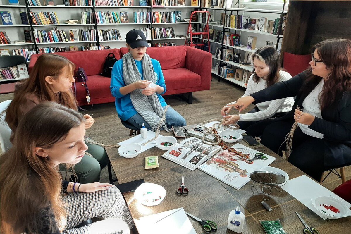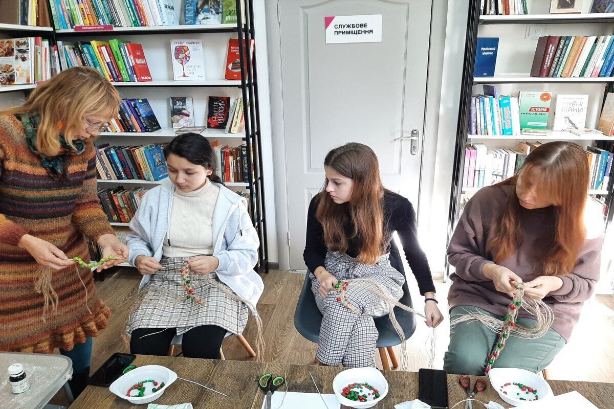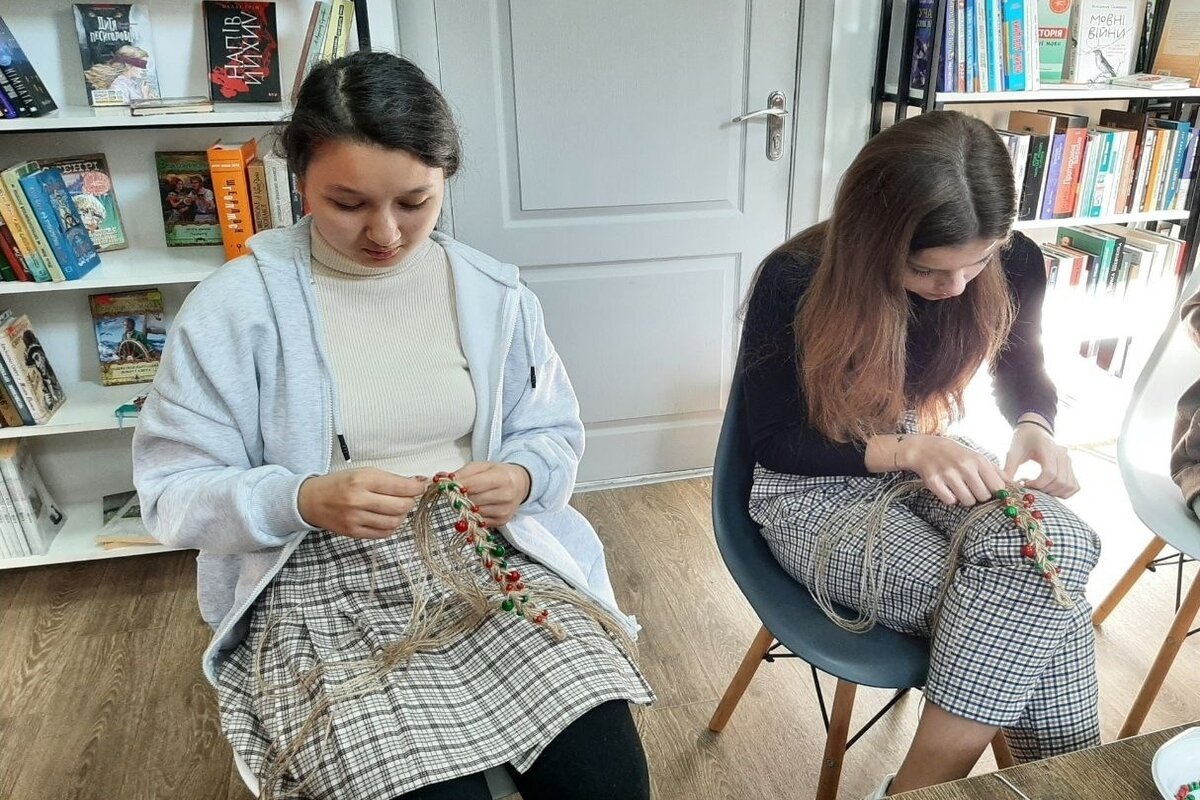 За роки радянської влади українці втратили частину власної культури та традицій. Загубилися знання про деякі ремесла, елементи побуту, традиційні народні страви, деталі українського костюма тощо. Нині, як і багато століть тому, українці борються за відродження національної свідомості та людської гідності, адже в цих життєдайних джерелах – душа народу. Кожен з нас – спадкоємець великої скарбниці української культури, продовжувач її звичаїв. А це неможливо без їхнього ґрунтовного знання. Підтримуючи необхідність збереження традиційної культури бібліотека на проспекті Соборному, 173 запросила дівчат на майстер-клас із виготовлення етнічної прикраси. Ведуча – майстриня Марина Широкова, розповіла учасницям про прикраси, що були дуже популярні в наших прабабусь, про натуральні матеріали, з яких вони виготовлялись і продемонструвала різні техніки їх плетіння зі джгута. Дівчата змогли створити власну нашийну прикрасу в старовинних мотивах із запропонованих дерев’яних намистин.