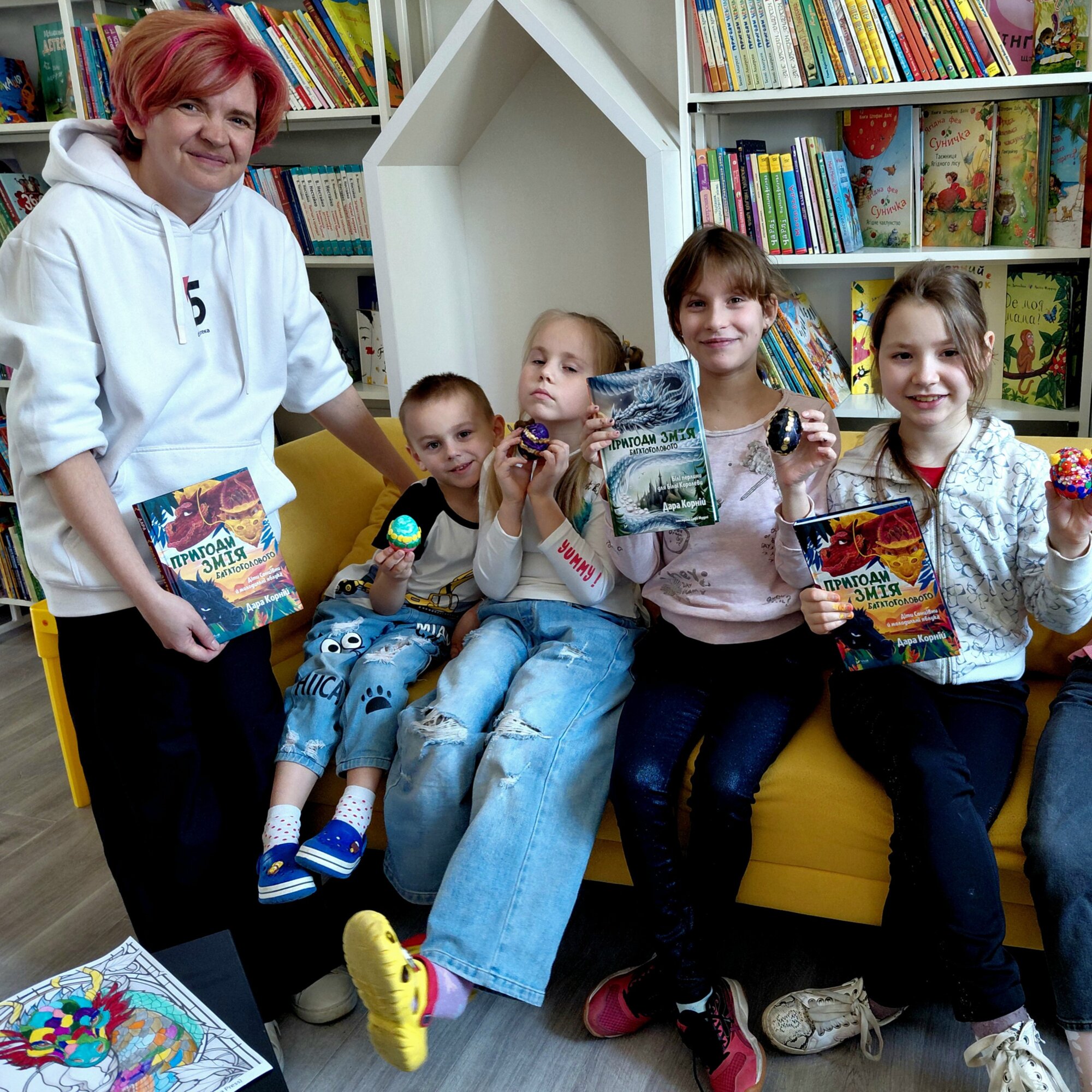 У дитячій бібліотеці на пр. Моторобудівників, 64 відбулася зустріч у межах проєкту «Book UA: література, що творить», присвячена книгам Дари Корній (Мирослава Замойська) – письменниці-фантастки (вона пише в жанрі фентезі). Це означає, що у її книжках оживають міфічні істоти, відбуваються чарівні пригоди і боротьба добра зі злом. Дара Корній дарує нам чарівні світи, де українська культура оживає, а пригоди чекають на кожному кроці. Саме на цьому і наголошувала ведуча Катерина Дромашко, створивши дружню атмосферу для спілкування, читання й натхнення. Діти активно долучалися до обговорення та майстер-класу з виготовлення драконячого яйця різними техніками.