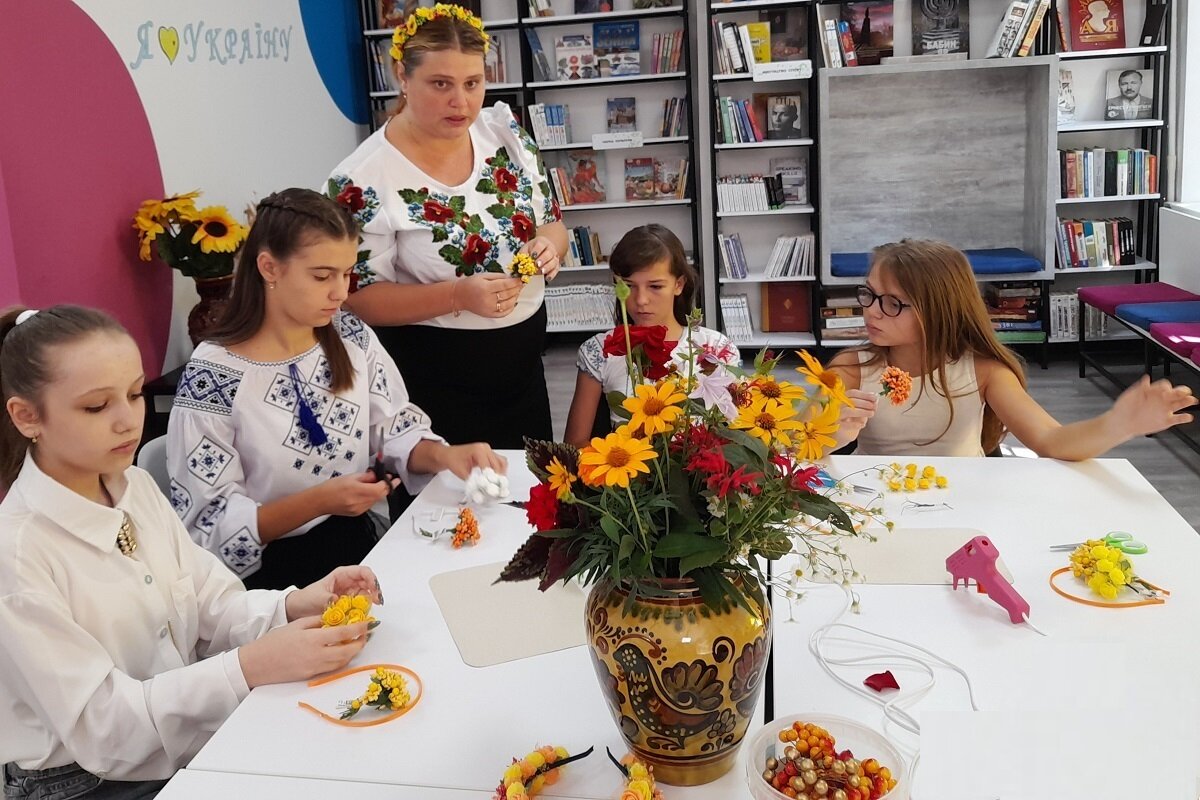 До Дня Незалежності України в бібліотеці на Ладозькій, 26 було відкрито Майстерню святкового вбрання. 26 серпня майстриня Надія Цинкуш розповіла гостям і учасникам про символічність і особливе значення вінка та кожної квітки і стрічки в ньому, про надзвичайну актуальність і популярність його саме зараз, у важкий час випробувань. Запропонувала кожному зібрати свою власну прикрасу, виходячи з особистого досвіду, пережитих подій і емоцій, що залишили слід в душі і серці.