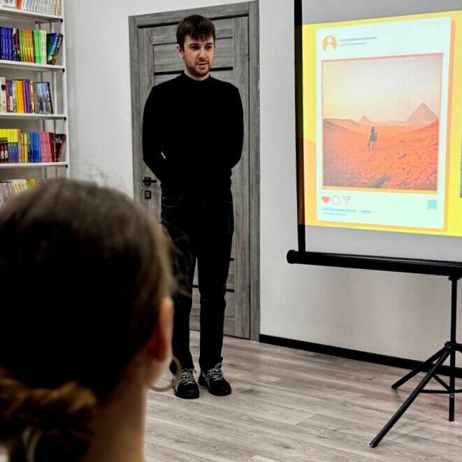 У світі, де кожен має смартфон і може знімати новини, дуже важливо розуміти — хто такі журналісти і як вони працюють. Досвідчений викладач і знавець журналістської справи Віталій Бабенко розповів підліткам в бібліотеці на пр. Моторобудівників,64, як працює медіа, чому важливо перевіряти факти і як шукати інформацію. Обговорили чи доцільно використовувати штучний інтелект в навчанні та при написанні текстів.