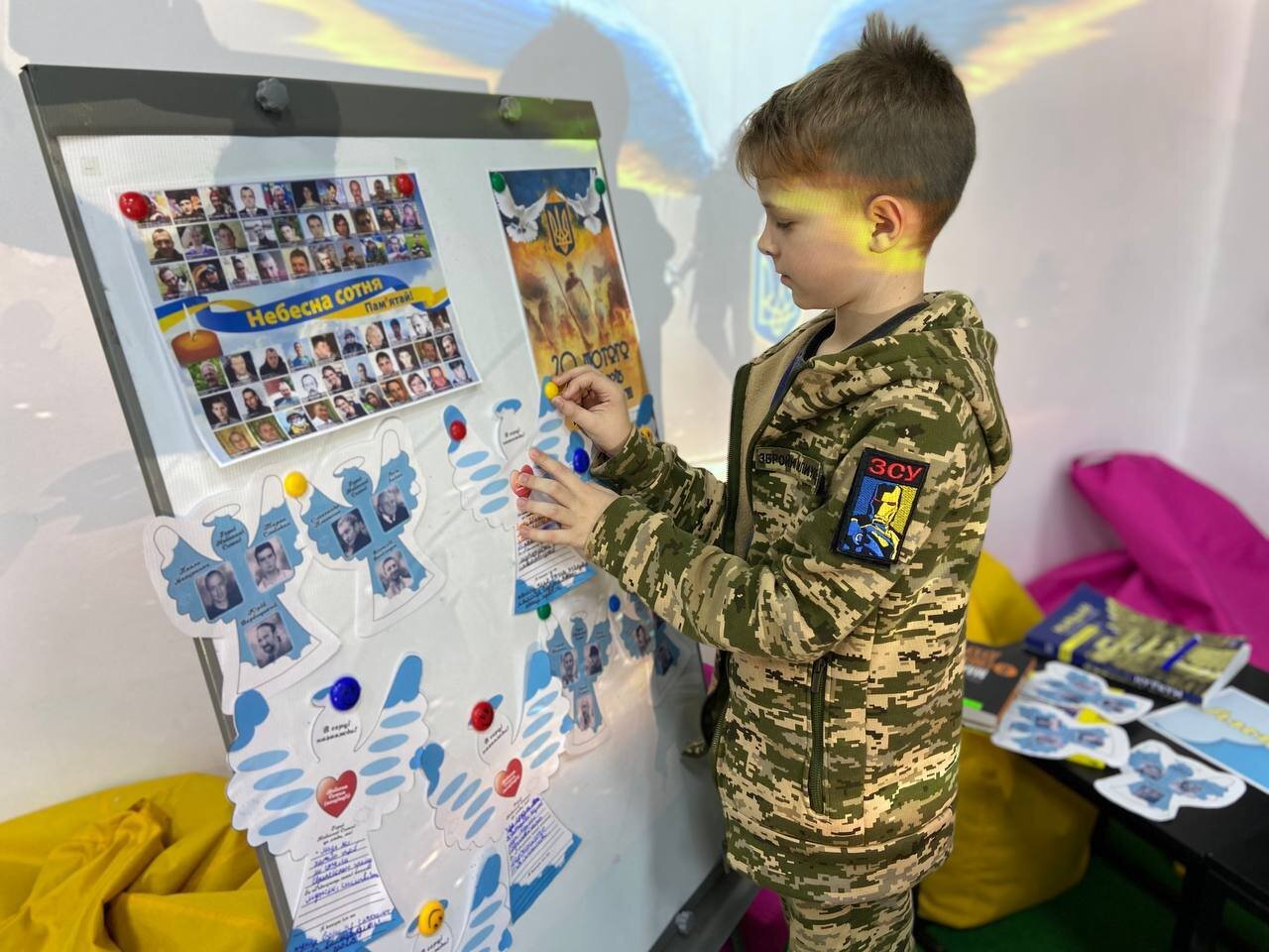 У бібліотеці за адресою вул. Запорізького козацтва,17а пройшло заняття-дослідження історії минулих подій. Сучасні діти не застали цих подій або мають ще дуже «дитяче» бачення і розуміння історичних процесів. Разом з бібліотекарями вони з’ясували, кого називають Героями Небесної Сотні та зробили власноруч янголів на їх честь.