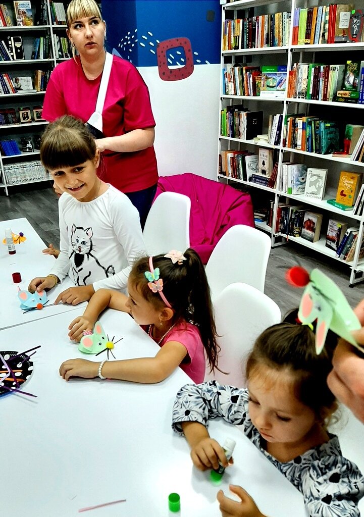 І цього разу бібліоняня від бібліотеки Моторобудівників,64 запросила маленьких читачів на гучну мишачу вечірку «У пошуках сиру та друзів», на якій влаштувала мишачий танок і конкурси, захоплюючі ігри. Учасники вечірки пройшли небувалі випробування, які об'єднали і подружили «мишенят». А головне діти дізналися, що всі миші бояться котів і НЕ люблять сир, а сир люблять люди.
