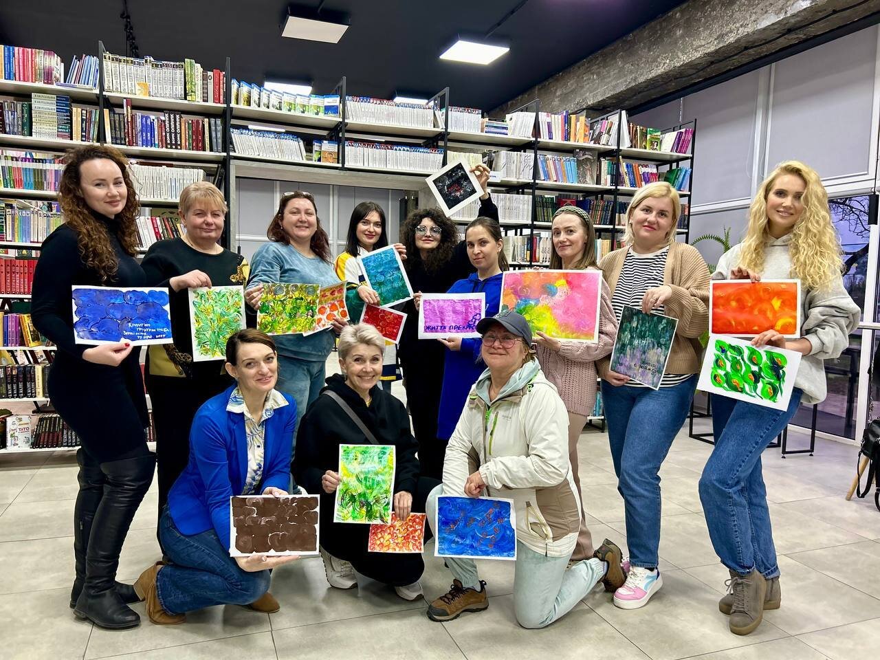 Якщо не зараз, то коли? У бібліотеці вул. Запорізького козацтва, 17а відбувся тренінг з елементами арт-терапії: малювання мотиваційної картини акриловими фарбами. Це саме та річ, яка буде надихати вас на нові звершення, заряджати позитивними емоціями та допоможе у пошуках натхнення. Художні навички не потрібні, бо робота створюється по відчуттях, де кожному кольору ми самі надаємо значення та зміст. А психологиня, арттерапевтка Ольга Опілат створила теплу та довірливу атмосферу у жіночому колі, допомогла у виборі афірмацій, щоб змінити негативні стереотипи мислення.