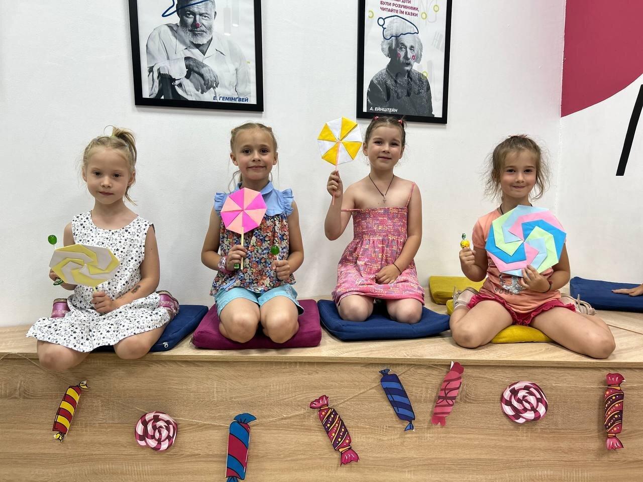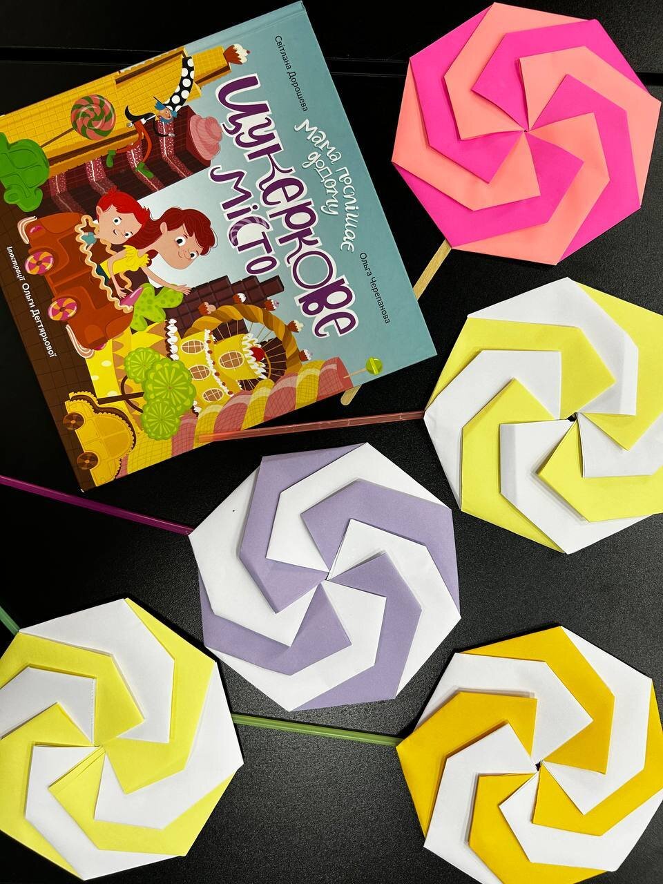 У бібліотеці на вул. Запорізького козацтва, 17а діти познайомилися з книгою «Цукеркове місто» Світлани Дорошевої. Хто ж не мріє перетворювати все навкруги на улюблені смаколики? Наші читачі, надихнувшись «смачною» казкою, зробили льодяник з паперу в техніці оригамі, який вийшов дуже реалістичним. Шкода, що його не можна з’їсти, тож діти отримали справжні ласощі.