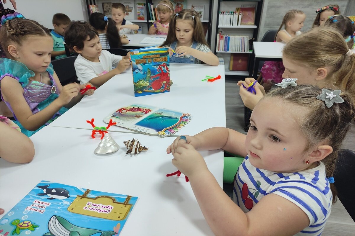 Що може бути краще у літню спеку, ніж зануритися у прохолодну морську воду! Тож бібліоняня на Ладозькій, 26 (Дніпровський район) відправила малечу розгадувати таємниці морських глибин. Спочатку за допомогою енциклопедії «Мешканці морів та океанів» дітлахи пройшли необхідний інструктаж, переглянули відеоролик, щоб бути готовими до цікавих випробувань та зустрічей. А потім почалися справжні пригоди. Втомлені, але щасливі мандрівники зробили собі на згадку маленького яскравого крабика з синельного дроту.