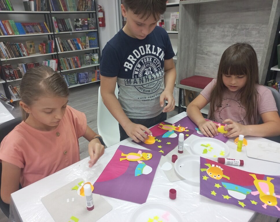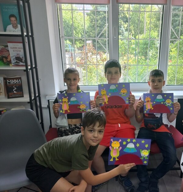 А після наукової подорожі відправилися у книжкову - «Пригоди у космосі» Ольги Дужак. На майстер-класі «Космічні прибульці» кожен показав свою креативність і творче бачення.