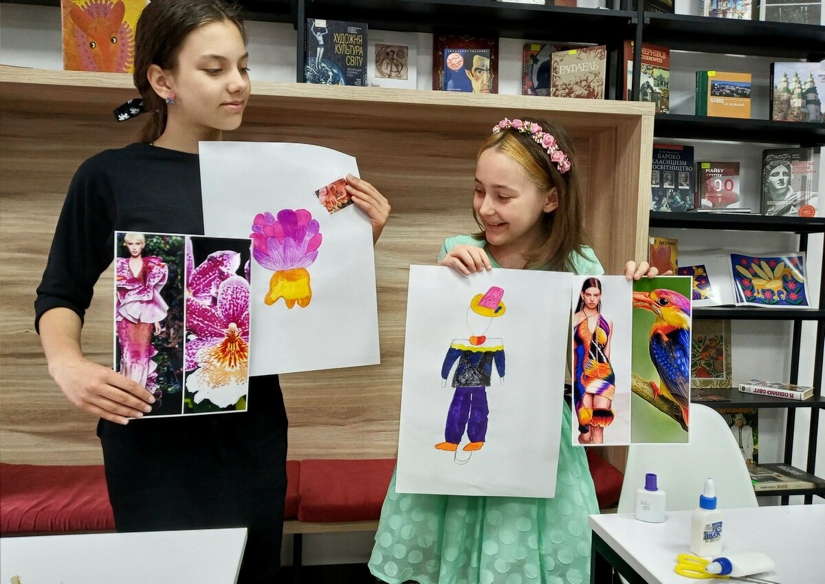 Дівчатка подивились унікальні колекції одягу, пройшли тест «На скільки я модний», пофантазували і намалювали власні ескізи модних суконь.