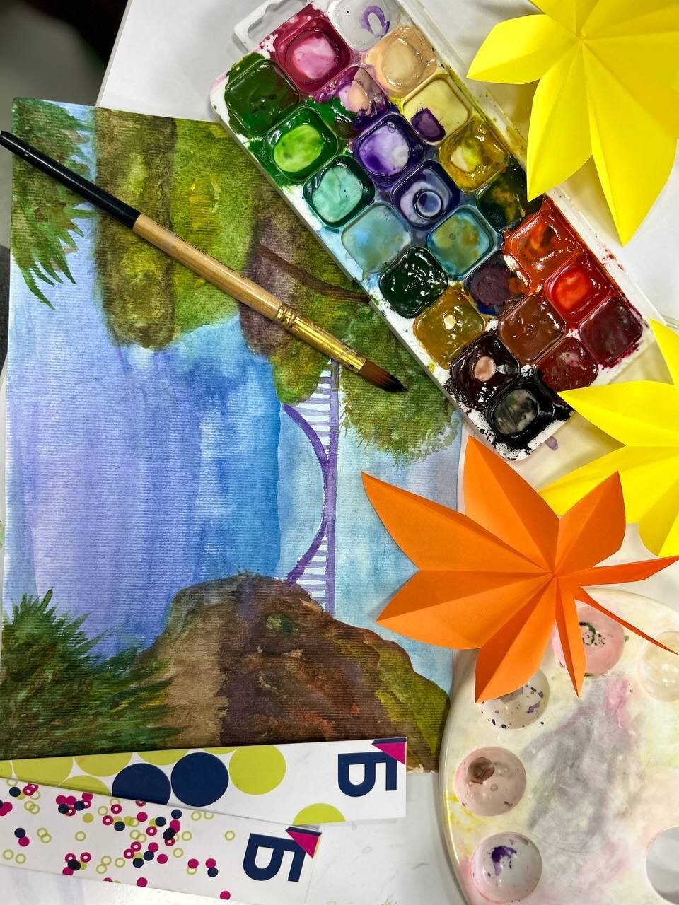 Майстер-клас «Осінній всесвіт Хортиці» у техніці акварель.