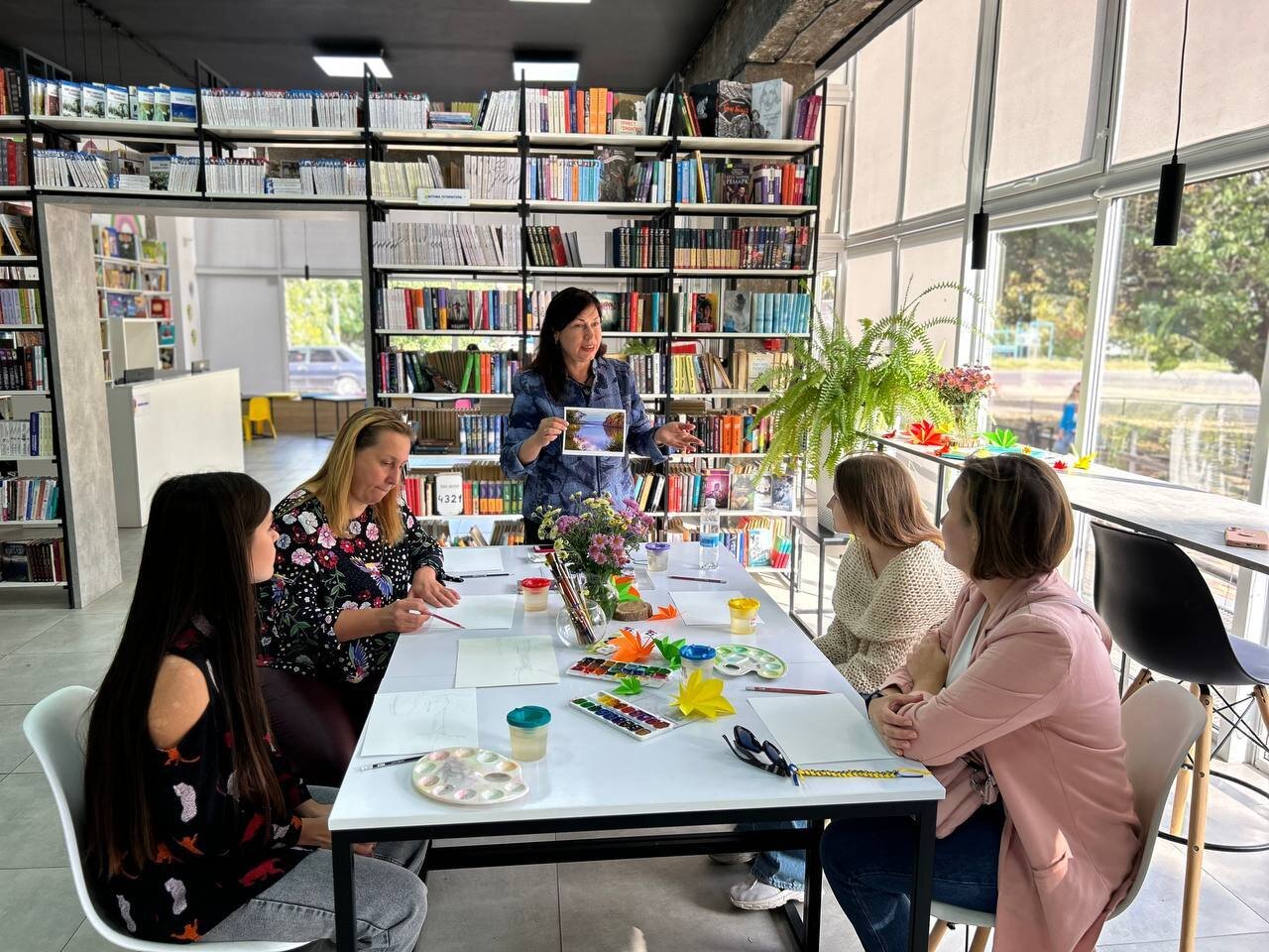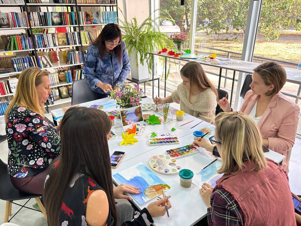 Саме тому, до Дня міста Запоріжжя, у бібліотеці вул. Запорізького козацтва, 17а пройшов майстер-клас з малювання осіннього пейзажу острова Хортиця. Художниця, власниця арт-студії