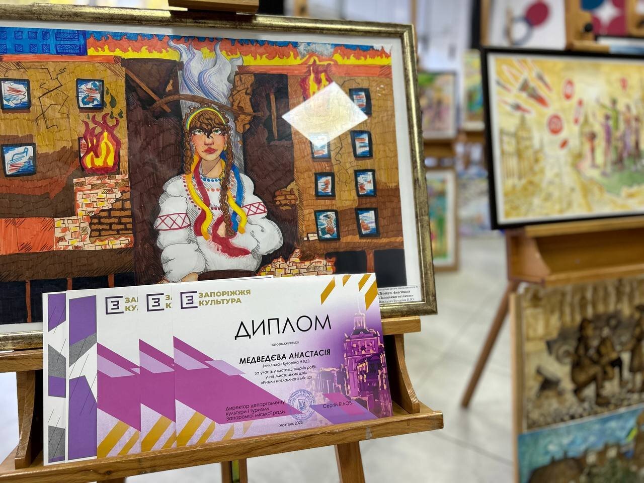З нагоди Дня міста Запоріжжя, у бібліотеці вул. Запорізького козацтва, 17а відкрилась виставка дитячих робіт «Ритми незламного міста» від учнів мистецької школи №3. Кожна робота вражає високою майстерністю та хвилюючими сюжетами, передає щиру дитячу любов до нашого міста. Гра на гітарі одного з учнів школи створювали патріотичний настрій та святкову атмосферу у бібліотеці.
