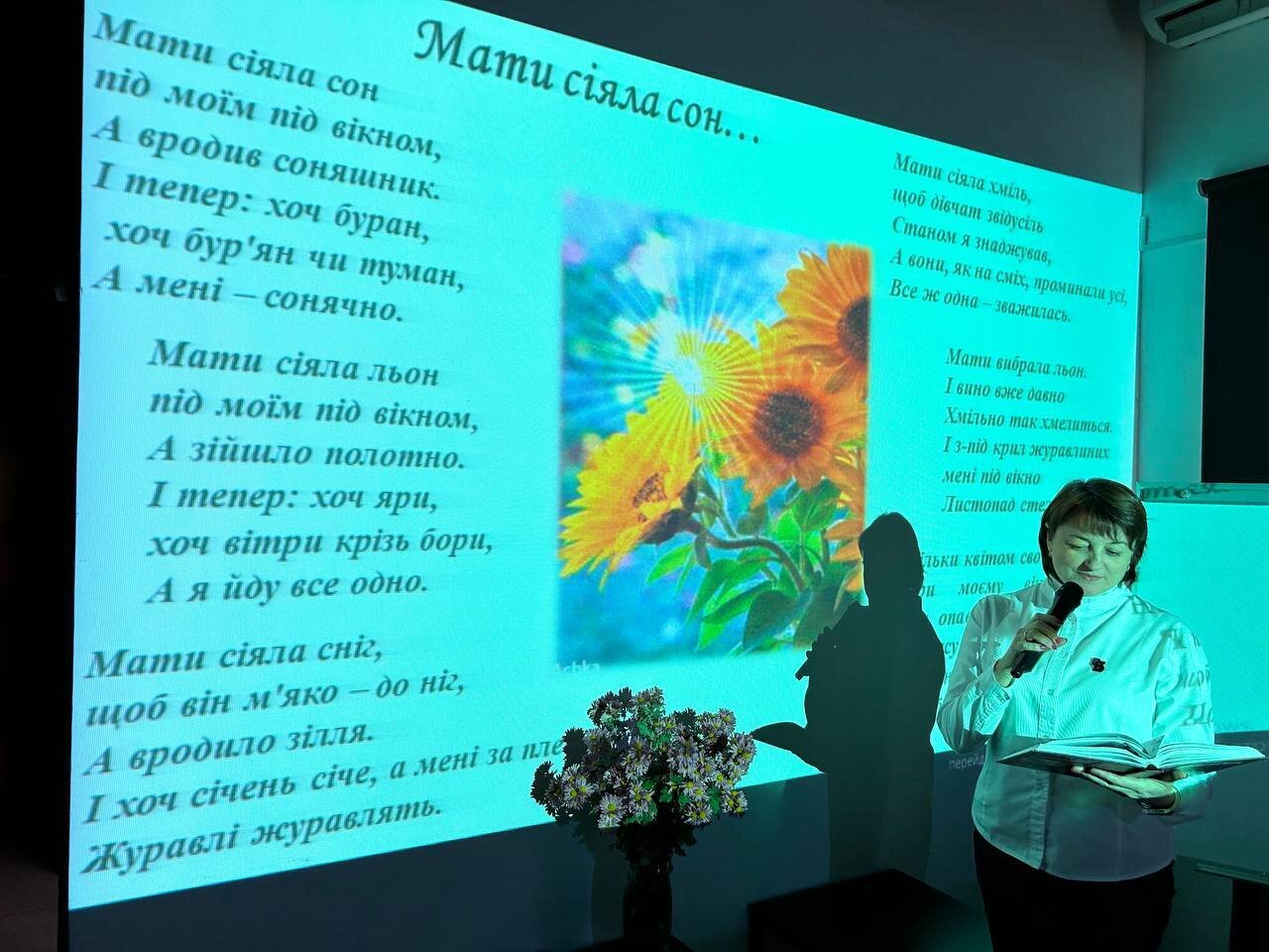 У таку похмуру погоду, у такі складні часи так хочеться підтримки і теплих обіймів мами. Бо вона найрідніша і найважливіша людина у житті кожного з нас. Саме тому, у бібліотеці вул. Запорізького козацтва, 17а в межах проєкту «Прокачаймо українську» ми запропонували нашим читачам познайомитись з поетичними творами Бориса Олійника про маму. Читання поезії, прослуховування пісень на слова відомого поета підняли з глибин душі найкращі почуття та спогади присутніх.