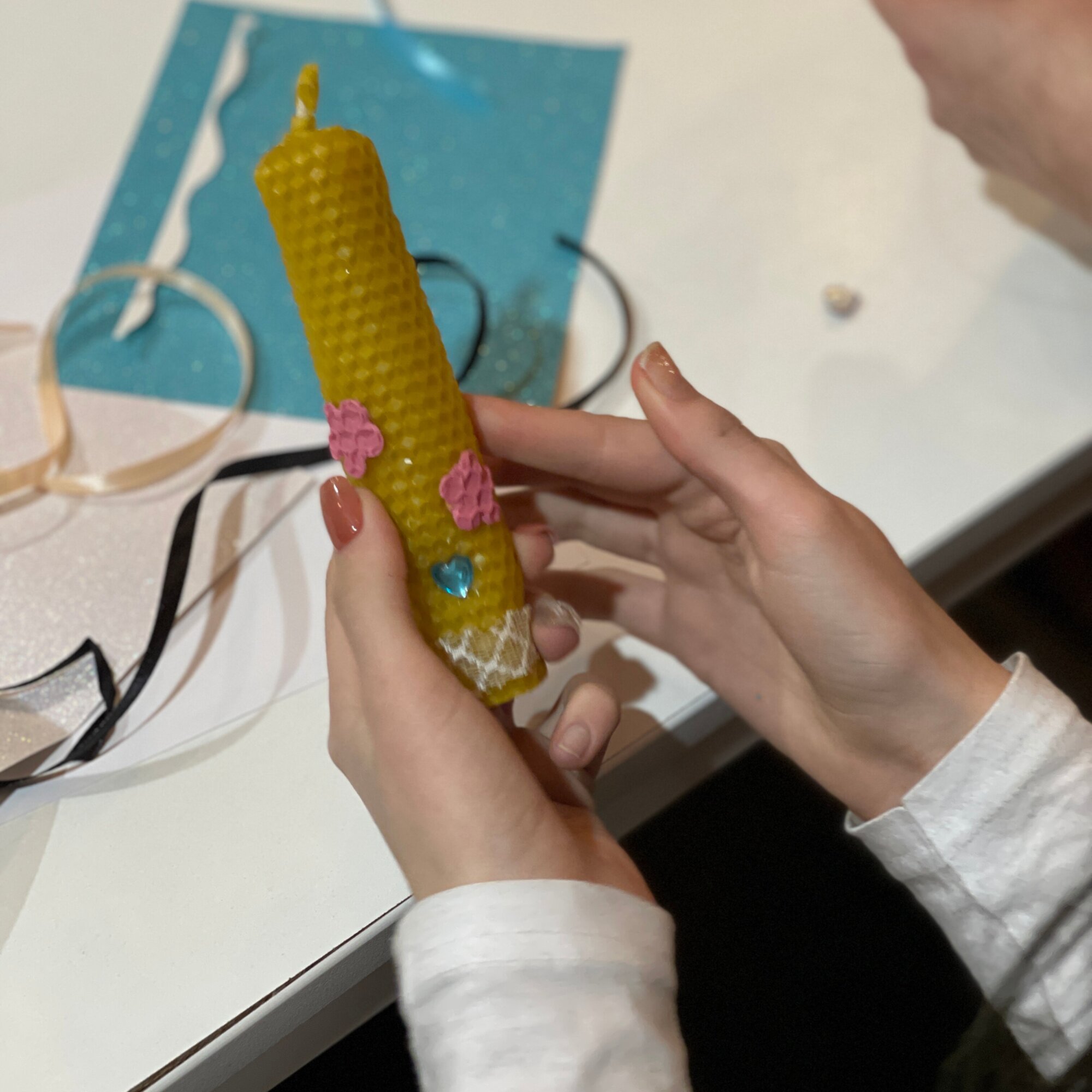 Медові свічки виготовляють із натуральної вощини, яка має не лише приємний медовий аромат, але й корисні властивості. При горінні вони очищують повітря, створюють атмосферу гармонії та спокою. Додавання кольорової вощини та інших прикрас додає свічкам декоративності, що робить їх чудовим подарунком або прикрасою для дому. Виготовлені з натурального бджолиного воску, вони мають приємний аромат меду та квітів, і до сьогодні залишаються символом чистоти, тепла та затишку. Майстер-клас з виготовлення таких свічок — це не лише можливість долучитися до давніх традицій, але й приємний спосіб провести час, створюючи унікальний виріб своїми руками.
