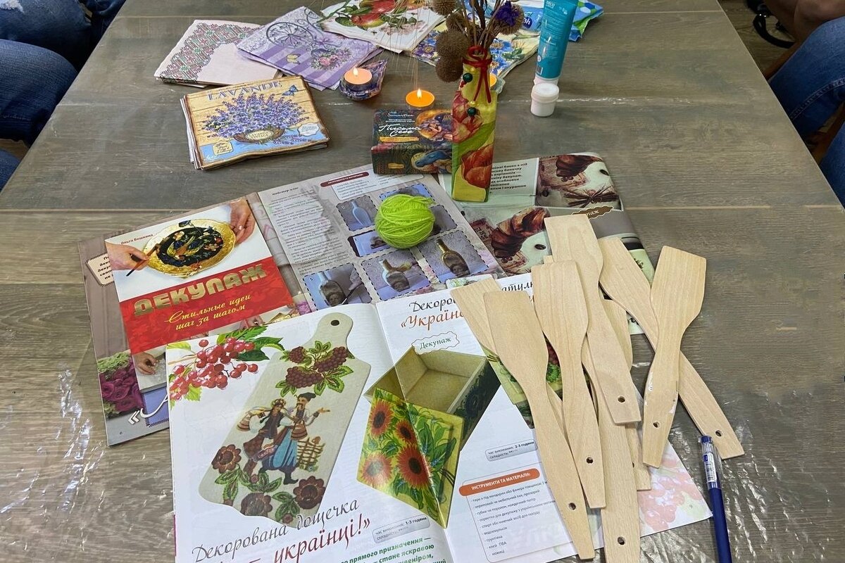 Психологи надали учасницям для прикрашання кухонне приладдя. Власноруч оздоблена дощечка чи лопатка викликатимуть приємні емоції і спогади про досягнення на тренінгу.