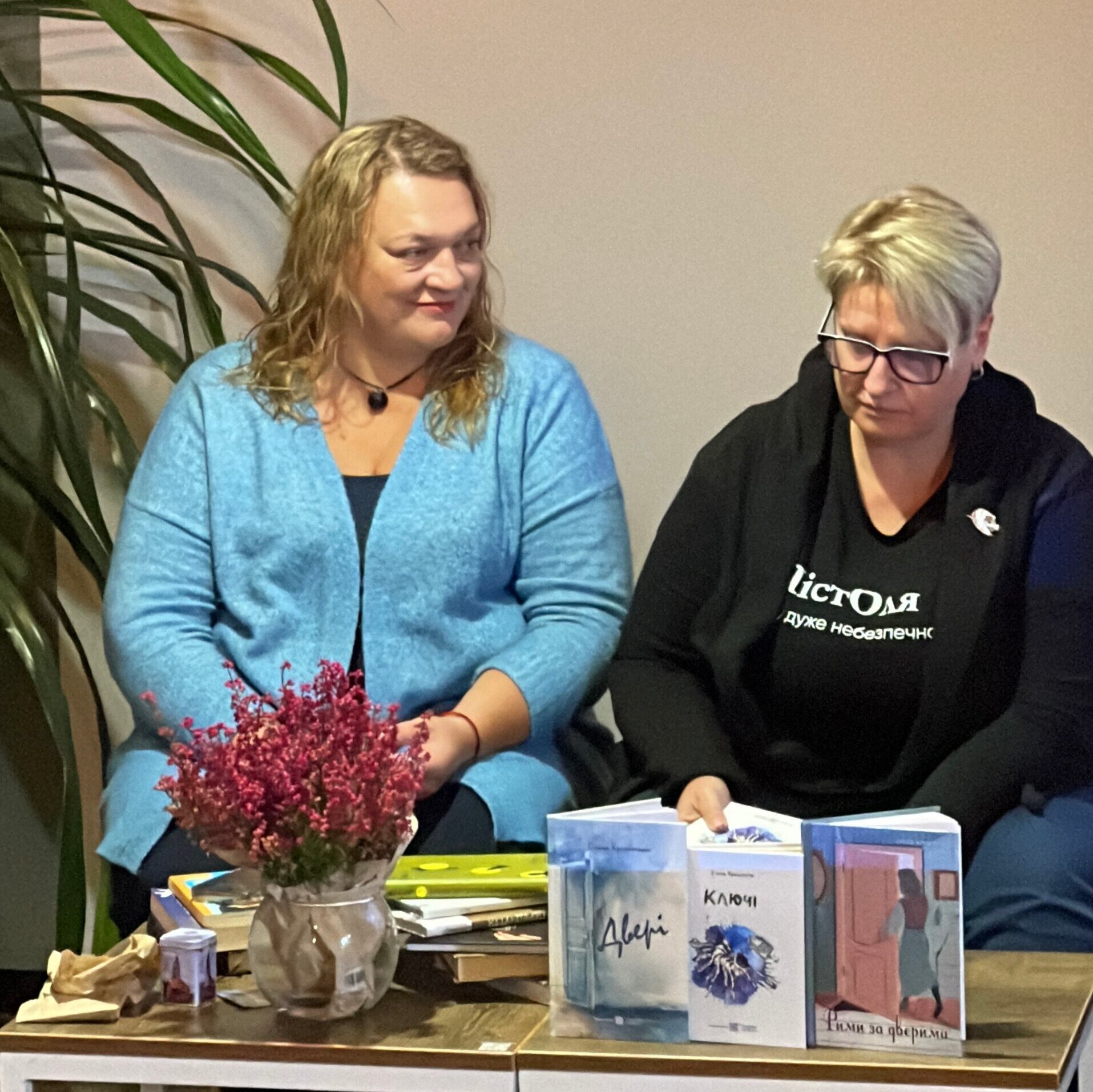 В Центральній міській бібліотеці на Гоголя, 66 у рамках мандрівного літературно-волонтерського проєкту #двітьотінатойоті на підтримку Всеукраїнського форуму військових письменників відбулась презентація збірки прози і поезії Ольги Криштопи “Двері”.