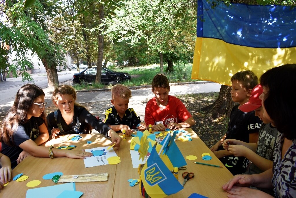 Так у бібліотеці Дніпровського району (вул.Добролюбова,11) виникла ідея проведення майстер-класу, присвяченого Дню Незалежності України, зробити таку стилізовану квітку–оригамі у традиційних жовто-синіх кольорах.
