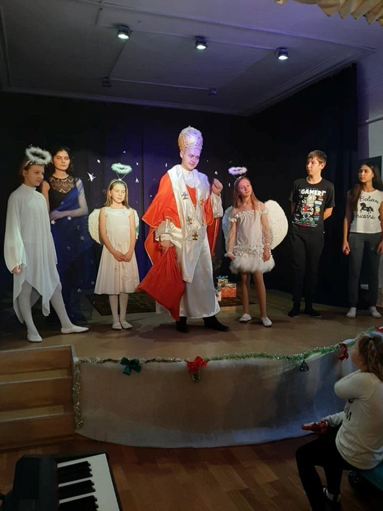 Учні та викладачі школи у святкових костюмах, з яркими музичними номерами створили атмосферу справжнього новорічного чарівництва і подарували всім новорічну казку та різноманітні смаколики. Адже коли ж ще, як не під Новий рік, чекати виконання всіх найпотаємніших бажань, про які знає тільки Святий Миколай!