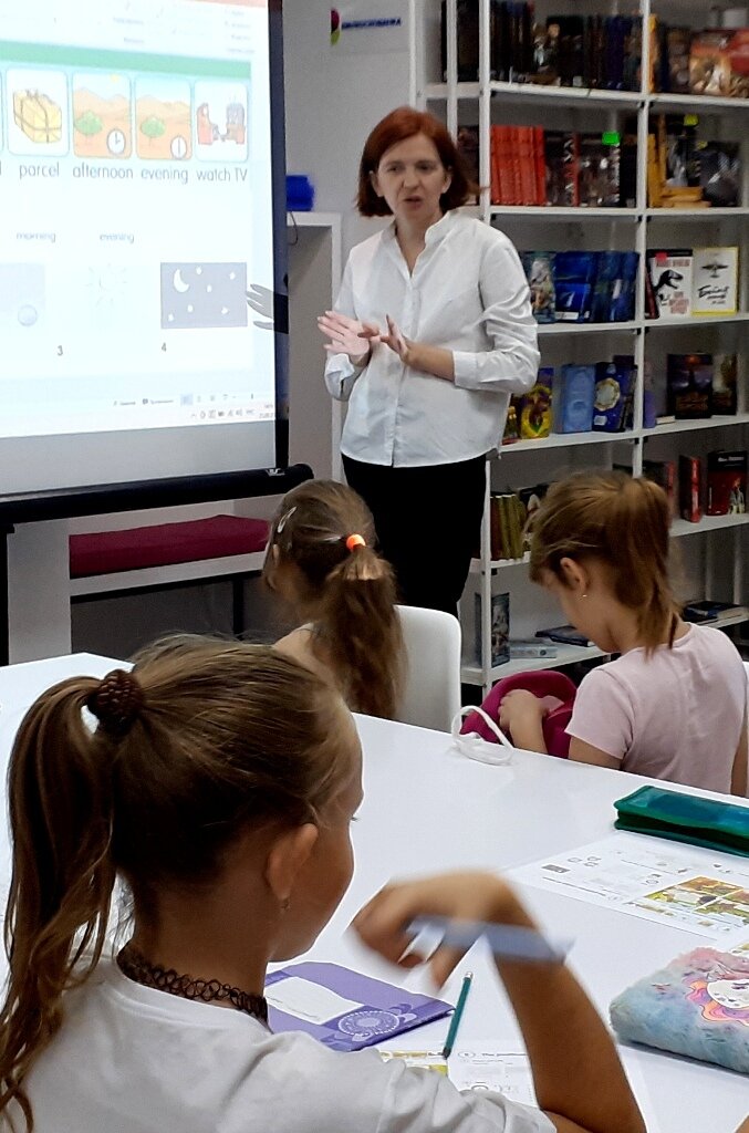 Цікаві та пізнавальні заняття із вивчення англійської мови для дітей продовжуються. Перш за все треба вивчити англійський алфавіт. Знання мови починається зі знання літер. Катерина Дромашко та діти з цього і починають вивчення «English на подушках». А вже потім, вони відпрацьовують і граматику, і словниковий запас, і написання слів, і вимову.