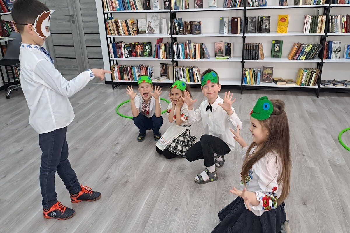 Зустрів гостей хлопчик-Барвінок, який запросив їх до «Читальні для малят», де вони і познайомились з героями та подіями легендарної книги. З дівчинкою-Ромашкою відгадали загадки про тварин і птахів батьківщини і вивчили їх англійські назви.
