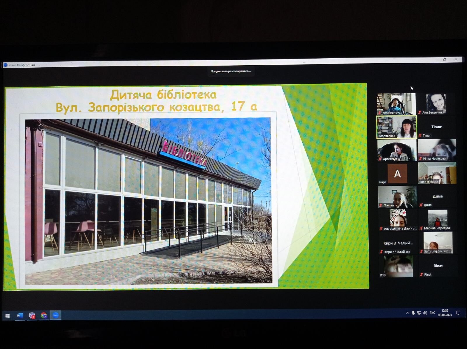 Бібліотекарі в онлайн форматі презентували комфортні умови читацьких залів, розповіли про заходи, майстер-класи, зустрічі, які відбуваються в бібліотеці. Учні ознайомилися з новою, сучасною літературою, а їх батьки з правилами користування міськими бібліотеками.