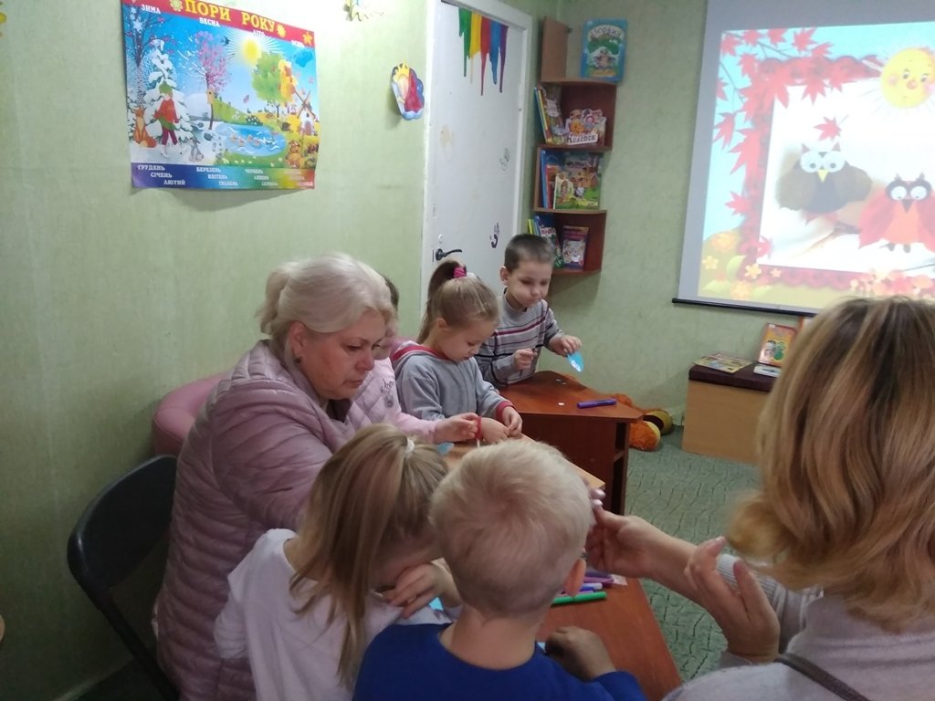 Із захопленням вони майстрували з паперу та листочків тітоньку Сову, яку побачили у невеличких мультфільмах про осінні місяці. А наприкінці заходу на малят чекало найприємніше — перегляд книжок.