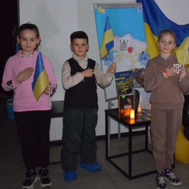 Для юних читачів бібліотеки на вул. Запорізького козацтва, 17-а відбувся захід, присвячений Дню пам’яті Героїв Небесної Сотні — людей, які віддали своє життя за свободу, гідність і майбутнє України. У доступній формі діти дізналися про події Революції Гідності, значення понять свободи, справедливості та громадянської відповідальності. Через творчість і діалог діти вчилися співчуттю, повазі та любові до своєї країни. Захід поєднав пізнавальну частину з творчими активностями: малювали янголів пам’яті, якими потім символічно прикрашали небо над мапою Батьківщини. А також слухали ліричні вірші та долучилися до хвилини мовчання.